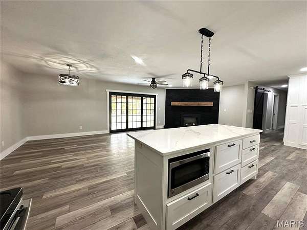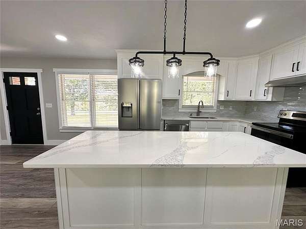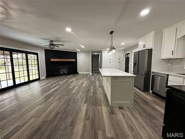This beautifully renovated 3-bedroom, 3.5-bath home sits on 11.52 acres (m/l) and offers privacy, space, and style. Step inside to an open floor plan featuring custom-built cabinetry, quartz countertops, and brand-new stainless steel appliances. The electric fireplace adds warmth and charm to the spacious living area, while luxury vinyl laminate flooring flows throughout the home for a sleek, low-maintenance finish.The partially finished basement includes a full bath and plenty of space for additional living. The remaining basement provides the convenience of a lower-level garage and workshop--perfect for hobbies and storage. Enjoy relaxing on the covered back porch overlooking your private acreage, complete with picturesque views and abundant wildlife. Need space for your RV or boat? Check out this oversized garage and barn for all your equipment and storage needs. The paved private drive ensures easy access year-round. Whether you're watching deer at dusk or sipping coffee with a view, this property offers secluded country living approximately 1.5 miles from city limits--a rare opportunity you don't want to miss! Schedule your private showing today and come experience the perfect mix of luxury, land, and location.
