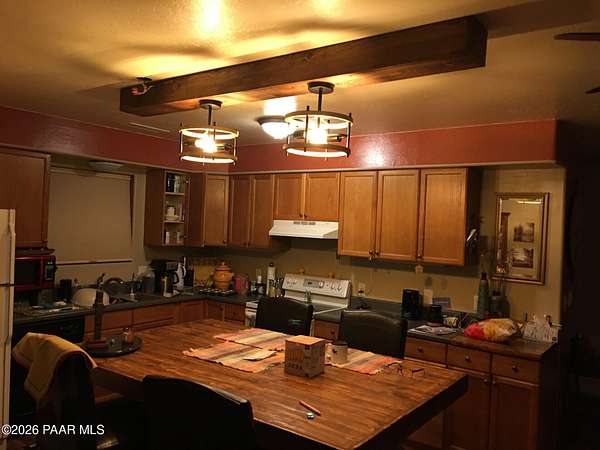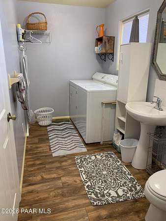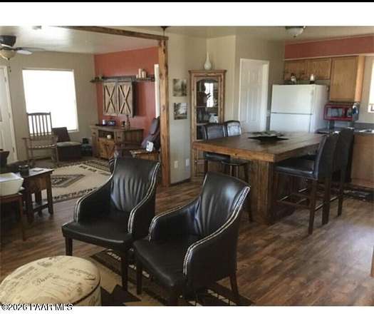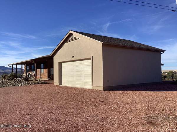 This charming single-family home at 14504. E Ridge Way in Dewey-Humboldt, Arizona, built in 2001, offers 1,084 square feet of comfortable living. With six inch walls, one inch double pane windows, and 18 inch attic insulation, it's energy smart and low maintenance. Enjoy central AC, a propane dryer and furnace, and a fully finished 25x25 foot interior garage with 12 foot ceilings. The property features a deep well with excellent water quality, a new 50 year roof installed in 2023, a water softener, drinking water filter, septic system and no HOA. Firewise abatement has been completed twice on this spacious 2.8 acre lot, making it perfect for a peaceful, private retreat in a beautiful natural setting.