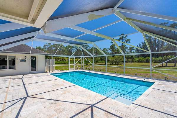 Experience the equestrian lifestyle on 5 pristine acres in Caloosa. This elegant 5-bed, 3-bath CBS home, built in 2007, boasts an open split floor plan, a gourmet kitchen with quartz countertops, and stunning views of the screened saltwater pool, added in 2019. Enjoy a 3-car garage, two storage sheds, and a fully fenced yard. Modern upgrades include a 24KW Generac propane generator, reverse osmosis water system, and impact windows and doors installed in 2022. Discover luxury, tranquility, and space all in one extraordinary property. Perfectly designed for both entertaining and everyday living, this estate captures the essence of rural charm with modern convenience.