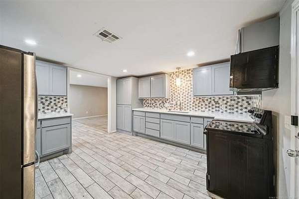 The kitchen was remodeled in 2021 and offers updated finishes and functionality. The property is a gardener's dream with multiple pear, apple, and peach trees, along with grape vines, asparagus, and strawberry plants. A fenced-in garden provides ideal space for growing and harvesting year-round.