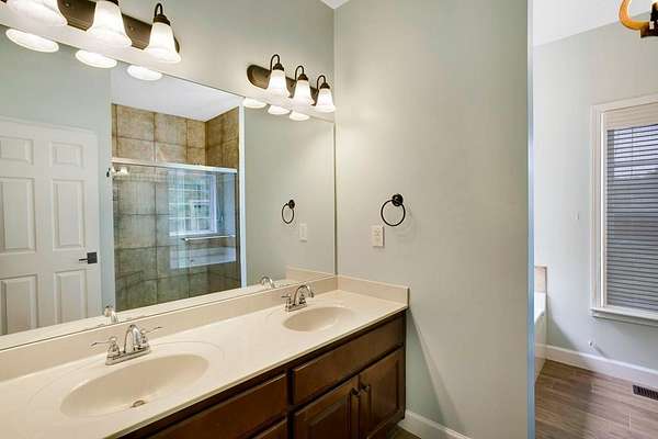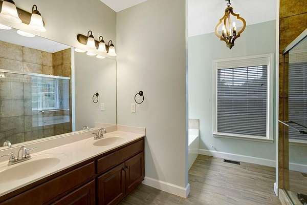 - Ceiling Fan(s), Double Vanity, Granite Counters, Laundry On Main, Pantry, Primary On Main, Tile Shower/Tub, Washer/Dryer Connection