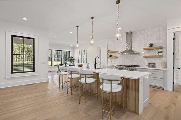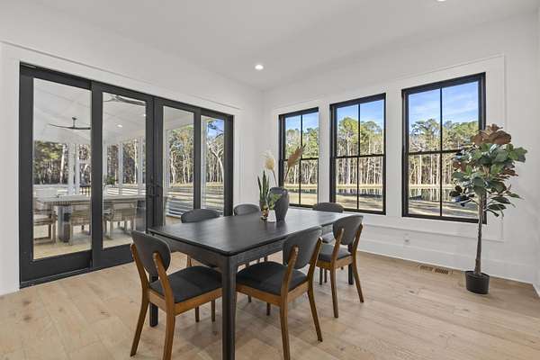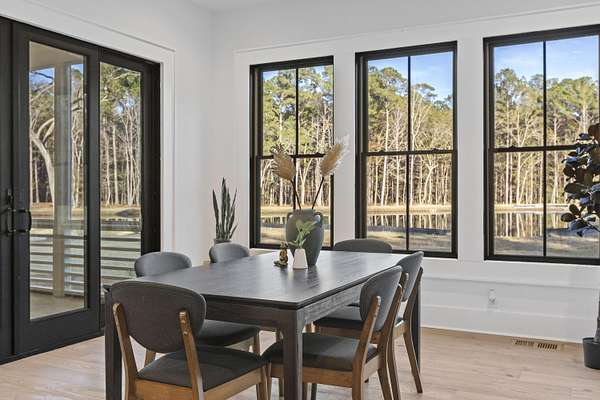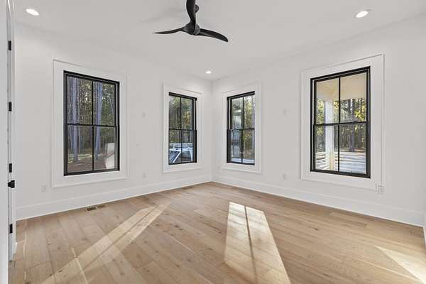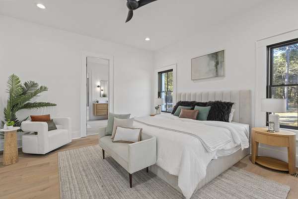 Estate Gates at Serenity Pond....a peaceful escape into country living located on John's Island, not far from downtown Charleston. A private gated 60+ acre tract of land with a 5-bedroom/5.5 bath new construction custom home, three-car garage, and a 2 bedroom/2 bath guest suite on a manicured open area with a large pond just out your back door.Walking through the front door of the main house you're greeted with an open concept; Living room, kitchen and dining all overlooking the screened-in porch. Sunrises over the serenity pond greet this picturesque back yard. Primary bedroom is located just off of your living area with en suite bath and massive walk in closet. An office, guest room with en suite bath, laundry room, and full pantry round out the main level.Upstairs, you will find two bedrooms that share a hall bath, as well as the fifth bedroom with en suite bath. The detached three car garage sits just off the rear entry to the main house. A spacious two bedroom/2 bath apartment suite is located just above the garage with separate entrance. Perfect for family, Guest or others to enjoy. The wooded grounds allow for a recreational paradise.