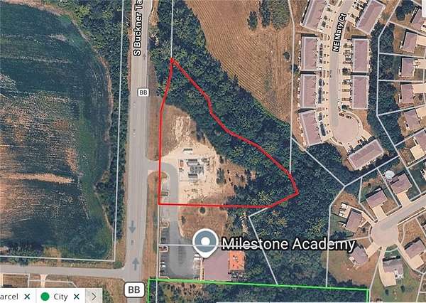 Exceptional 2.01-acre C2-zoned commercial property offering outstanding highway visibility and 420 feet of frontage along Grain Valley's main road. Positioned in a high-growth area along the thriving Buckner Tarsney corridor, this site benefits from strong traffic counts and ongoing commercial expansion, with new retail developments planned and underway nearby-supporting long-term demand and investment potential. The property features two 14' x 24' portable buildings with electricity. One building is heated and cooled, ADA accessible, and fully permitted with the City of Grain Valley-ideal for immediate business operations. The site also includes a paved parking lot, flat and fully usable land, and water on the property, providing flexibility for a wide range of commercial uses. This highly recognizable location was formerly home to The Valley Wagon, a successful and well-known local business that operated here for several years-demonstrating proven visibility, steady traffic flow, and strong commercial viability. Whether you're looking to establish, expand, or invest, this well-positioned commercial tract offers exceptional exposure and opportunity in one of Grain Valley's most active growth corridors.