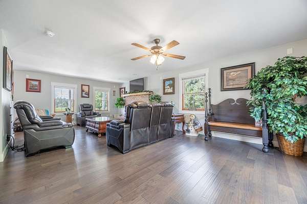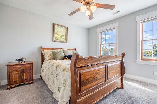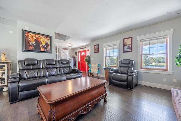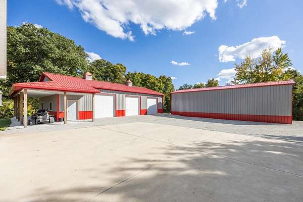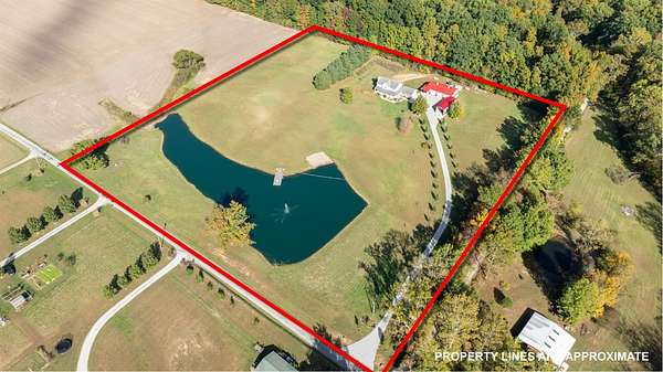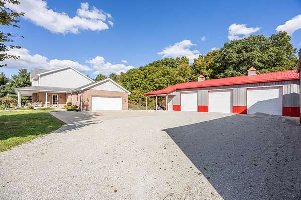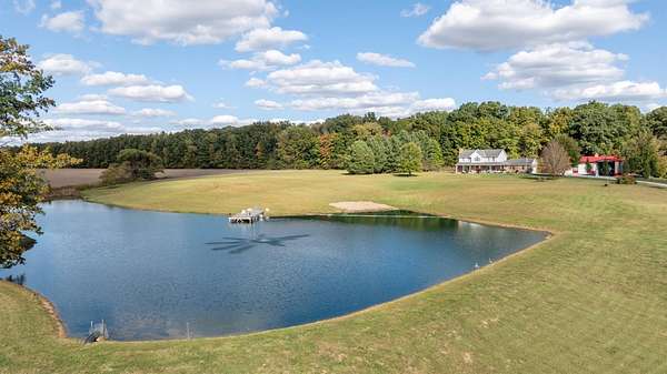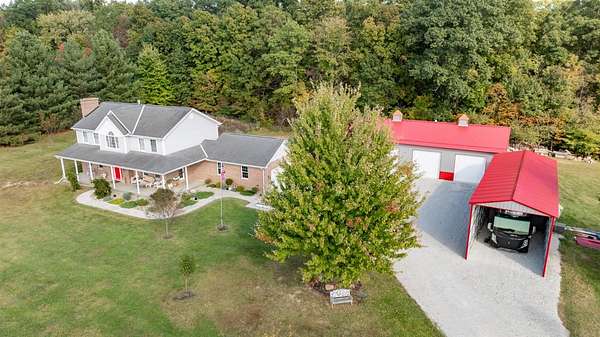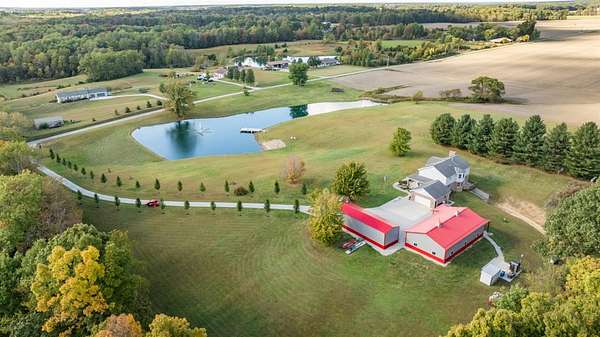 Peaceful country retreat offering the perfect blend of comfort, space, & natural beauty. Situated on 10.5 acres, this spacious 4-bed, 2.5-bath home offers 2,669 sq ft of well-designed living space, ideal for families, entertainers, or anyone seeking a quiet lifestyle with room to roam. Inside, you'll find a warm and inviting layout featuring multiple fireplaces, an open-concept kitchen w/ a breakfast nook, & a formal dining area. The full walk-out basement is already plumbed for an additional bathroom, offering excellent potential for future expansion. Step outside & you'll be greeted by a stunning 1.25-acre private lake perfect for fishing, kayaking, or simply enjoying the view. A 3-bay pole barn provides ample space for equipment, vehicles, or workshop needs, while the covered front porch invites you to relax and take in the peaceful surroundings. Conveniently located near I-74, this home offers the best of both worlds: country living with easy access for the commuter.