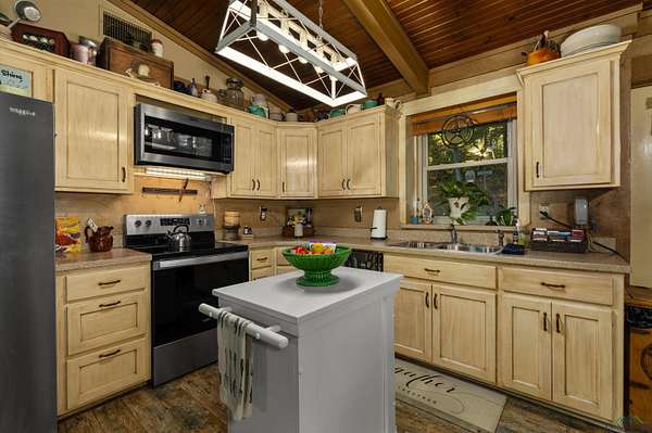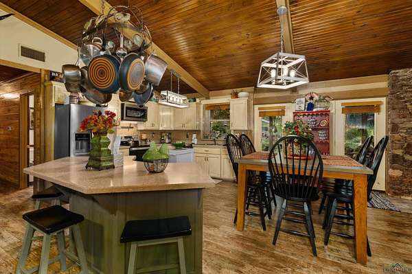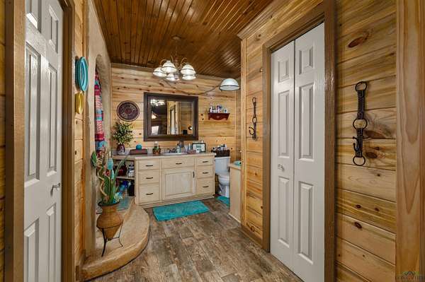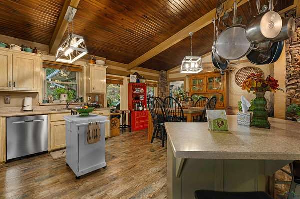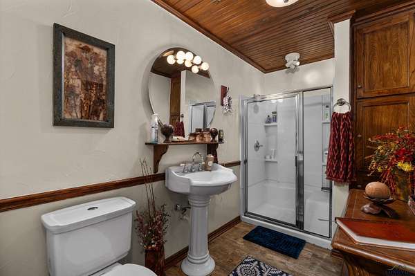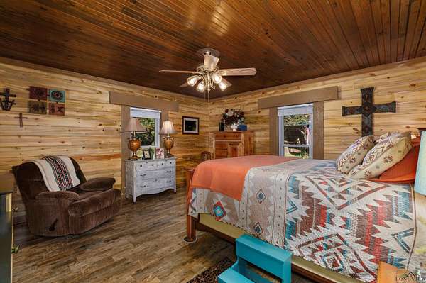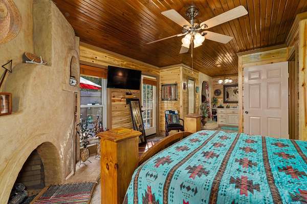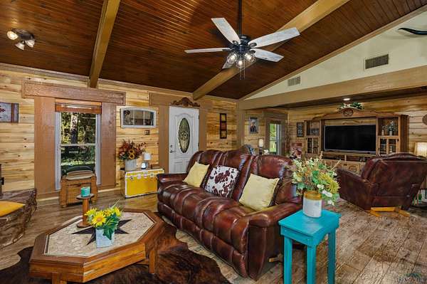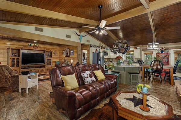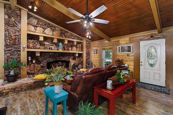 This custom-built, one-owner ranch-style home is a true gem, offering natural finishes. The exterior features striking stone accents that add character and curb appeal. Inside, wood-look tile flows seamlessly throughout, creating a warm and cohesive aesthetic. The third bedroom was opened up to create a larger living space! The open-concept living space is highlighted by a stunning, one-of-a-kind fireplace, perfect for cozy gatherings.The primary suite is a private retreat, complete with its own fireplace that exudes a relaxing, Arizona-inspired vibe. Right on 3.8 acres, this property is surrounded by trees, includes a shop/shed, small stables area, covered backyard patio and offering ultimate privacy future development and peace. Outdoors, you'll find a nature lover's paradise: a custom-built waterfall feature, abundant opportunities for birdwatching, and space for gardening or hobbies in the custom work shed. This home truly embodies the charm of country living at its finest. Check this one out today!
