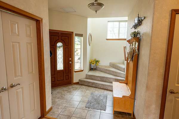 Welcome to your riverside retreat, where country meets the calming rhythm of the water. This one of a kind, original owner home offers breathtaking river views from nearly every corner. Thoughtfully designed with an open concept layout, it features four spacious bedrooms, 2.5 baths and a private den, ideal for a home office. Enjoy the seamless flow between the living room, dining area and kitchen, all leading to a scenic deck perfect for entertaining, or quiet mornings with a view. The main level suite opens onto the deck, offering a peaceful escape. Upstairs you will find three additional bedroom and a full bath. Outside, you'll find outbuildings, wood shed and full RV hookups, everything you need for projects and storage. Located just four miles from Interstate 5 for easy freeway access. This property blends country living with the beauty of outdoor recreation right at your doorstep. HOA Fees for KRCE Approximately $250.00 Per year. NOTE: The accuracy of the information provided is deemed reliable but not guaranteed, is subject to change and should be independently verified.