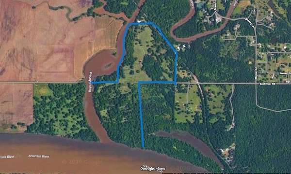 Approximately 107 acres MOL offered as two parcels sold together, consisting of 38.76 acres and 67.64 acres. This unique property is located where Bayou Manard meets the Arkansas River, offering exceptional riverfront acreage with recreational, agricultural, and investment potential. The land features a diverse landscape, including open pasture, large trees, and approximately 5 acres of established pecan trees. The property also includes a pond approximately 13-15 feet deep, providing an additional water source and excellent fishing and wildlife habitat. With frontage along both the Arkansas River and Bayou Manard, this property offers rare waterfront land with multiple natural water features. The terrain includes a mixture of open clearings and wooded areas, creating ideal conditions for hunting, fishing, livestock, farming, or a private homesite. The land supports abundant wildlife, including deer, turkey, and other native game, making it well-suited for recreational land use or hunting property. The combination of river frontage, bayou access, pond, pecan trees, and pastureland creates a versatile property with many possible uses, including agriculture, ranching, recreational retreat, investment land, or rural development. The natural setting offers privacy, scenic views, and multiple potential building sites. Large tracts with Arkansas River frontage and natural water features are increasingly difficult to find. This property offers a rare opportunity to own 107 acres of MOL waterfront recreational land with agricultural potential in a peaceful rural environment.