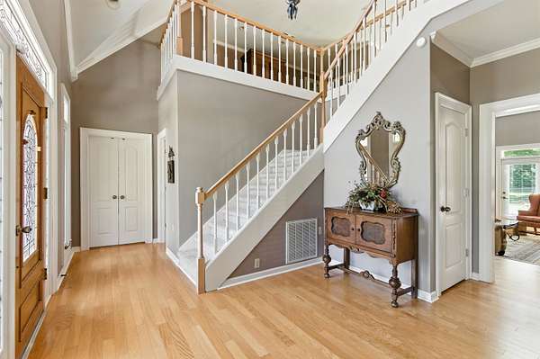 Est $3,604/moGreat house on 11 acres and very well maintained. Hardwood floors Master down with kitchen open to the great room and has office down