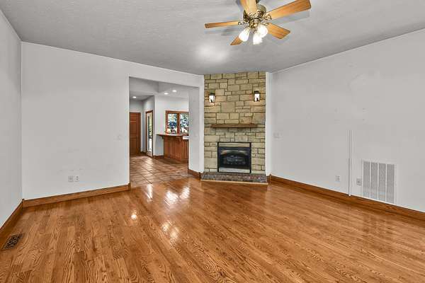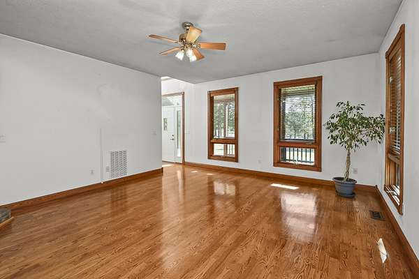 Your own slice of paradise awaits! Tucked away on a peaceful, tree-filled 3.61-acre lot in one of Marshfield's most desirable subdivisions, this cozy 3-bedroom, 2.5-bath home welcomes you the moment you walk through the door. The open staircase and high foyer ceiling create a bright and airy first impression, while the hardwood floors and tall ceilings throughout the main level add warmth and charm. The spacious primary suite on the main floor offers a large closet and a relaxing bath with a private water closet. The heart of the home is the large kitchen with an inviting eat-in area--perfect for family meals and catching up after a long day. Step outside and enjoy the beauty of nature all around you. Mature trees surround the property, offering privacy and a peaceful setting. There's also a storage shed and carport, giving you space for all your hobbies, tools, and toys. End your day on the front porch swing, taking in the quiet and the view--this truly is your own little piece of paradise.
