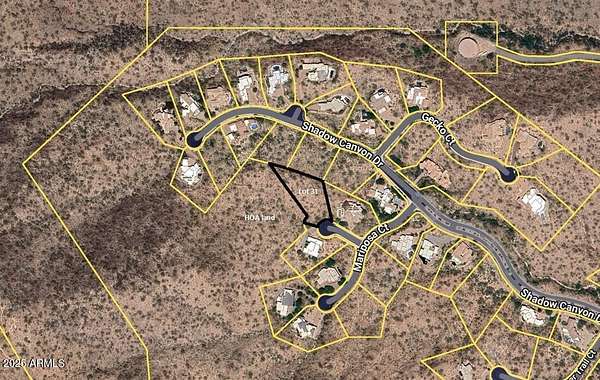 Est $2,694/moPremium hilltop location with 360 degree panoramic views from one of the higher points in Shadow Canyon on a quiet cul-de-sac. Gated community of $2M+ homes with straight on view of Four Peaks, the Fountain, McDowell Mountains, Mt Ord and Superstition mountains. Ideal for single level home offering privacy and bordering HOA land. Topo in documents tab. Also build to suite option available.