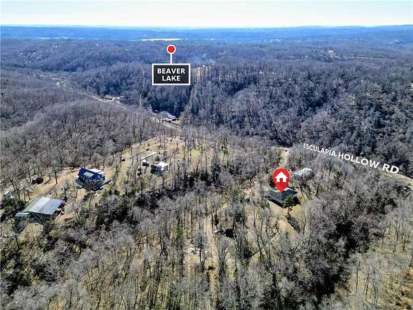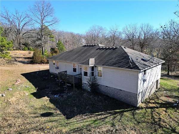 Priced under $215k, this five-acre property nestled on a hill offers privacy, space, and a blank canvas for buyers ready to add value. Located less than 5 miles from downtown Rogers, the 3 bed, 2 bath, 1,692 sq ft fixer-upper features vaulted ceilings in the living room, a 2-car garage, large primary suite, and a flat, secluded backyard perched above the surrounding landscape. Ideal for investors or strategic owner-occupants seeking land, flexibility, and future upside with a blank canvas. Natural ravines on both the east and west sides enhance privacy, while an interior loop road provides access to the usable portions of the property ideal for the next homeowners to take advantage of. The property includes a 720-ft well and a septic system that was recently pumped and inspected in 2025. Minutes from Beaver Lake, with space for potential builds like a shop, ADU, or RV pad making this is a rare acreage opportunity with real upside. Buyer to verify all information, sold as-is.