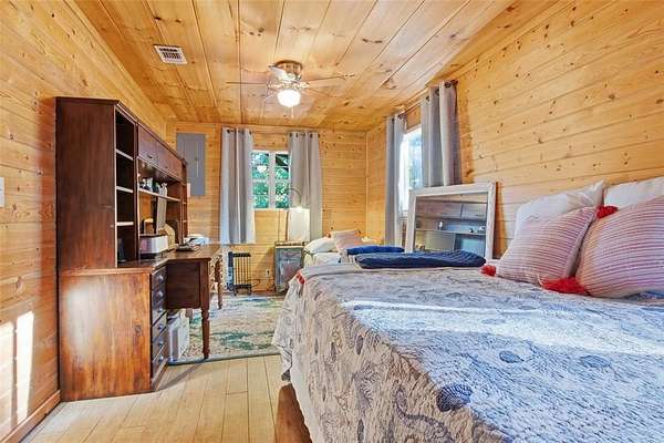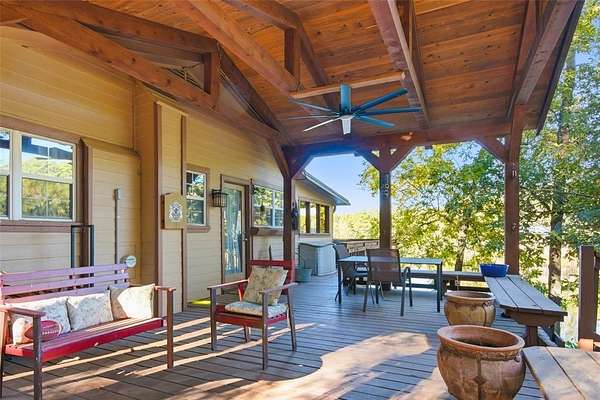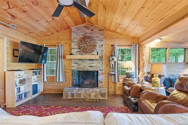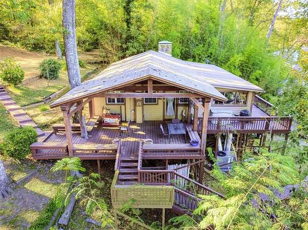 Discover the natural beauty and serenity of Lake Placid from this inviting waterfront cabin-style residence in Tyler. Tucked among mature shade trees and bamboo for privacy, this home sits directly on the lake's edge and offers panoramic water and forest views from nearly every room. Multi-level wood decks and covered porches extend the living space outdoors, creating perfect vantage points for lake views and gatherings beside the water. A private dock provides direct lake access for fishing, paddle boarding, or kayaking. There are 2 separate storage sheds as well as two storage areas beneath the house. Inside, the open-concept great room features wood-paneled walls, vaulted ceilings with exposed beams, and a stone-faced fireplace that anchors the space. Large windows frame the lake setting and fill the interior with natural light. The kitchen offers long counter runs, abundant cabinetry, and a wall of picture windows overlooking the trees and shoreline. A flexible game room or dining area connects seamlessly to the main living space, creating an easy flow for entertaining. The spacious covered deck includes seating and dining zones under a timber-beam roof with a ceiling fan. A gently sloped pathway leads to the dock and shoreline. Located approximately 9 miles from downtown Tyler, with groceries, coffee shops, and restaurants within 10 minutes. Enjoy a rare combination of lake access, wooded privacy, and proximity to town--a true East Texas hideaway on scenic Lake Placid.