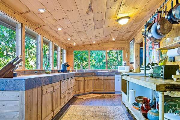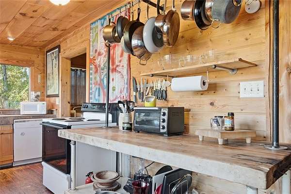 - Cable TV Available, Flat Screen Wiring, Natural Woodwork, Open Floorplan, Paneling, Pantry, Tile Counters, Vaulted Ceiling(s), Walk-In Closet(s)