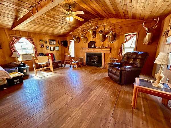 At the heart of the property sits a rustic 2-bedroom, 1-bathroom hunting cabin. This basecamp is equipped with electricity, a septic system, and the cozy warmth of propane and wood heat. There is also a large Great Room that provides the perfect gathering spot for friends and family to swap stories after a day of mountain exploration chasing whitetails high on the ridge or wild turkeys in the creek bottoms.