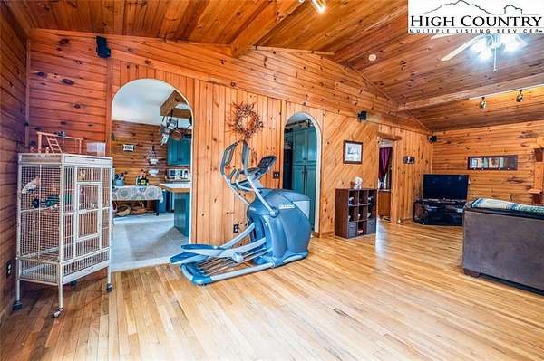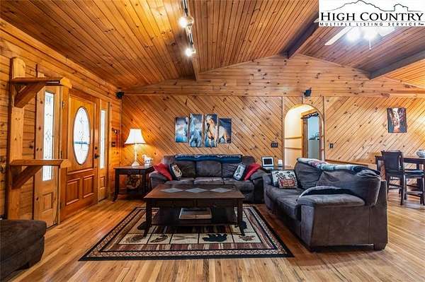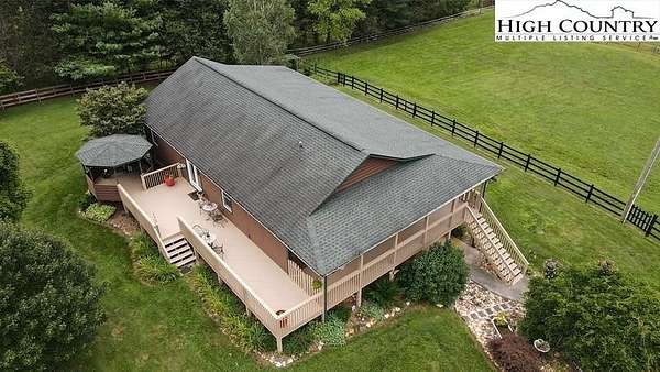 AN EQUESTRIAN'S DREAM PROPERTY!! Discover this beautifully maintained 3BR/3BA log sided home nestled on 6 fully fenced, (about 4 acres are fully fenced in for the horses), level acres, just a short drive to Boone, West Jefferson, Blue Ridge Parkway and The New River. Whether you're a horse lover, outdoor enthusiast, or simply seeking a peaceful retreat, this property offers the perfect balance of rustic charm and modern comfort--ideal for full-time living or a vacation escape. Step inside to an inviting open floor plan with vaulted ceilings and gleaming hardwood floors throughout the main living area. The spacious kitchen features a large center island, perfect for gathering and entertaining. The primary bedroom is conveniently located on the main level and includes a garden tub, walk-in shower, and dual vanity. Also on this level: a second bedroom, a full bath, and a bonus room/office. The lower level offers incredible flexibility--ideal for rental income, guest accommodations, or caretaker quarters. It features a private entrance, covered patio, full kitchen and dining area, bedroom and bath, a cozy living room, washer/dryer, and multiple bonus rooms for storage, office space, or hobbies. Outside, enjoy the covered/open deck with peaceful views of your horses grazing in the pasture. The property is loaded with extras, including: o hot tub, gazebo, and fire pit o outbuilding, large barn (60' x 40') with workshop area, stalls for 4 horses, and additional parking o run-in shed with 6 additional stalls and a creek along the back of the property o fenced garden, mature landscaping, grapevines, berry bushes, and open yard space for pets or play. With year-round easy access, this unique property is a must-see! Schedule your showing today and experience the endless possibilities of this exceptional mountain homestead. Some furniture can be negotiable. Don't let this one pass you by!