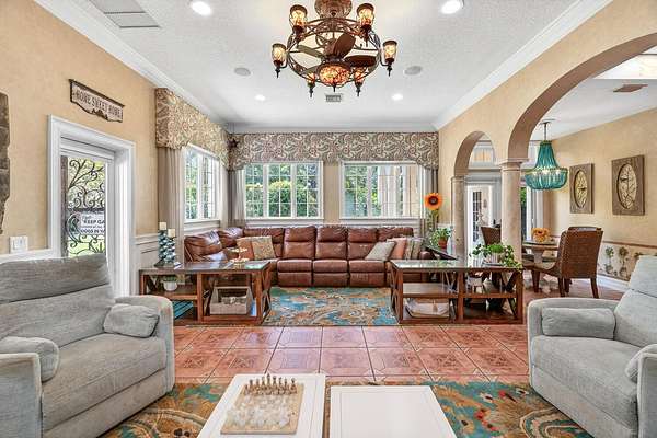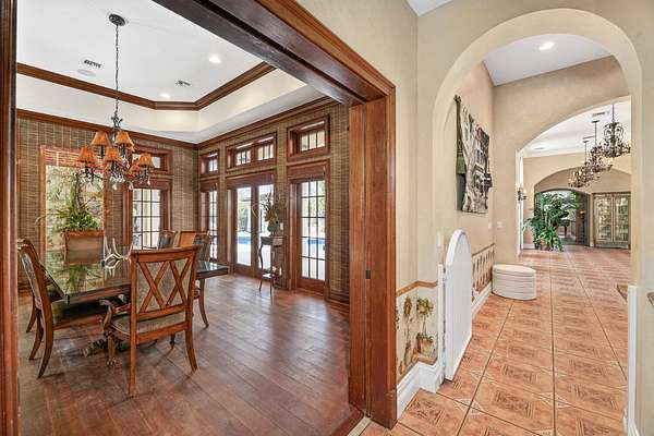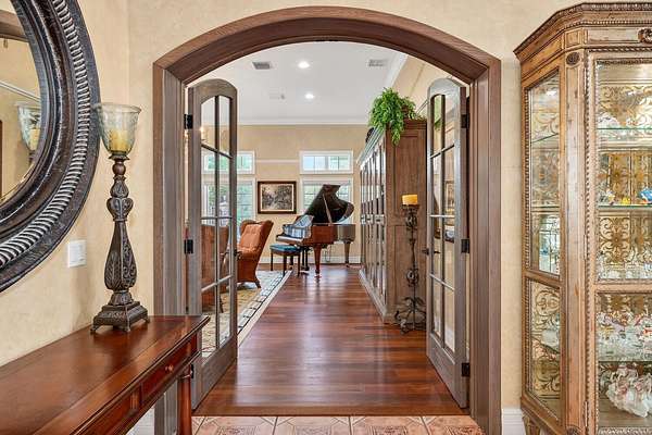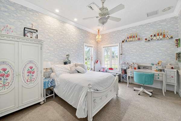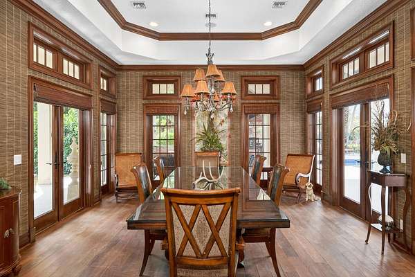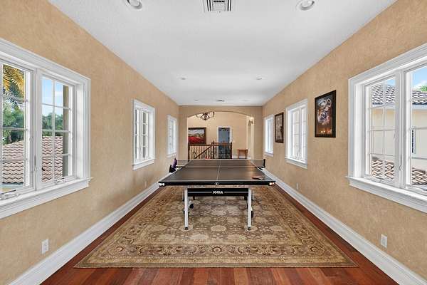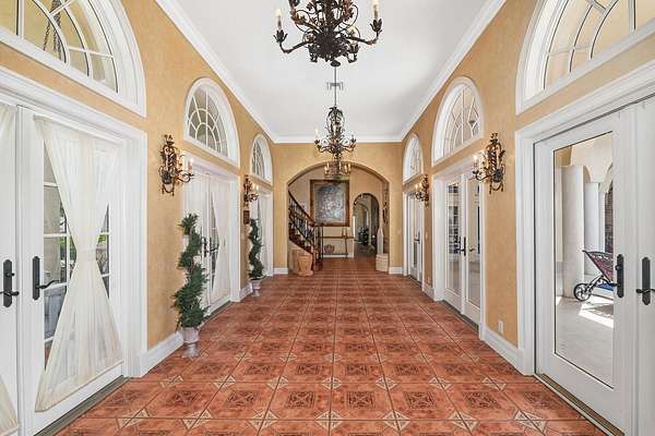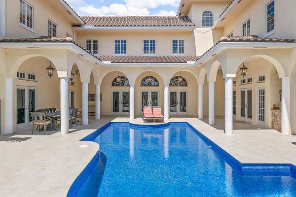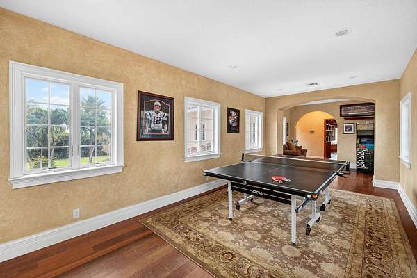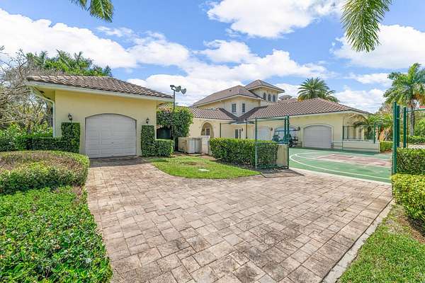 Nestled on 2.60 acres in the highly sought-after Paddock Park 2, this ultra-private two-story estate offers 7 bedrooms and 5.5 bathrooms with a thoughtfully designed layout ideal for family living, entertaining, and equestrian lifestyle. Set on a quiet street, close to Wellington International show grounds and with direct bridle path access this is an ideal property for equestrian use. It features timeless interiors with mahogany floors, a chef's kitchen, maids quarters, gym, and expansive living spaces. Outdoors, enjoy a resort-style saltwater pool, full outdoor kitchen, lush privacy landscaping, and unique amenities including a basketball court, koi pond, and garden beds - all supported by top-tier upgrades like a new roof, full-house generator, impact glass, and advanced home systems. One of the largest single lots in the neighborhood allows plenty of extra room for a barn, equestrian features or other exterior features to suit your needs. The residence showcases timeless design with rich mahogany wood floors, a classic and inviting aesthetic, and thoughtfully curated finishes throughout. The spacious layout includes custom upgrades throughout such as a dedicated home gym, chef's kitchen and an oversized gas fireplace that anchors the main living space. Car enthusiasts and families alike will appreciate the stately gated entrance leading to an impressive marble fountain and circular driveway, with an attached 3-car garage and additional 2-car garage. The outdoor setting is surrounded by mature, designer landscaping with lush clusia and ficus hedges providing exceptional privacy. Enjoy resort-style living with a fully updated saltwater pool featuring new decking, a new heater, and refined finishes. The expansive outdoor kitchen is powered by propane and ideal for entertaining. Additional features include a half court basketball court with stadium lighting, koi pond, fountain, mango and guava trees, irrigated vegetable garden beds, electric dog fencing and even a dedicated dog house. This property is equipped with top-tier systems for comfort and peace of mind, including a full-house generator, impact glass throughout, a new roof (2024), five A/C zones, clean-air UV lighting in all A/C units, reverse osmosis water system, attic decking for added storage, 7 inch seamless gutters, RV hookup with septic, and an ADT alarm and Ring camera system. A rare opportunity to own a private, well-appointed estate in one of Wellington's most sought-after communities.