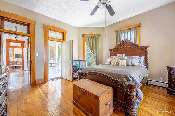 - 9 Ft + Ceiling, French Doors, Multi Panel Doors, Natural Woodwork