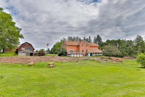 Country living at its best! Step into this 4,000+ sq ft brick farm house on 2.60 acres just north of Wausau on County Road A. This home is nicely set back from the road with a long driveway, picturesque views of neighboring farms, a private pond and a hobbyist's dream with multiple outbuildings for vehicle / recreational storage - with paver flooring and with electrical run in the front outbuilding. New mound system just installed (2025 by B&D Plumbing) which will be finished with final grading and seeding in the coming weeks, new drilled well (2021), added seamless gutters (2023) and roof shingles (2015/16). Charming curb appeal with historic elements only found in 1900's farm houses like the covered front porch, rounded brickwork around the windows and antique lightning rods. Inside offers a spacious layout with expansive front living room with fireplace, hardwood flooring, and oversized bay window. Large kitchen with included appliances and front dining area.