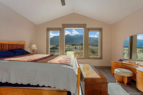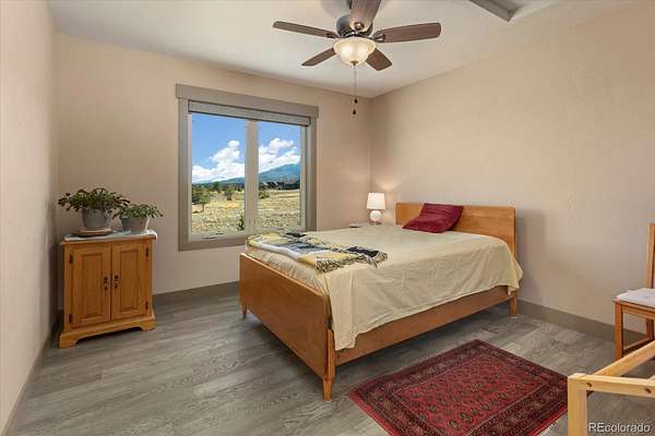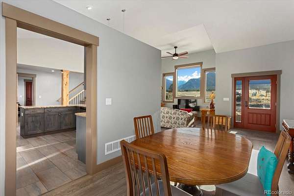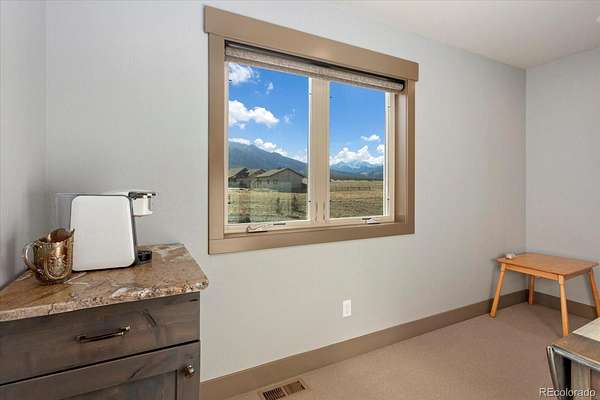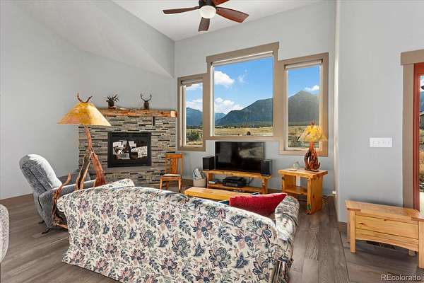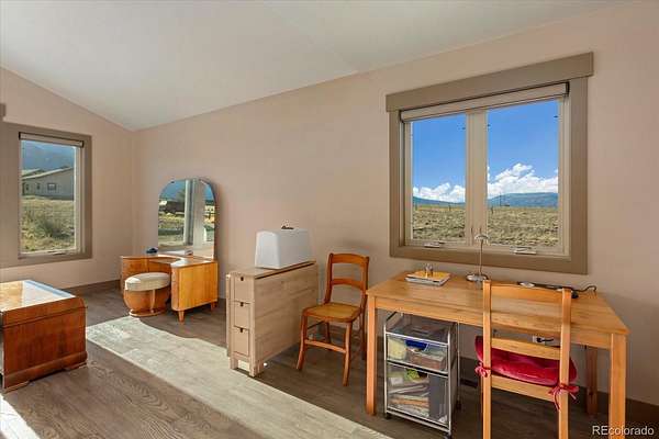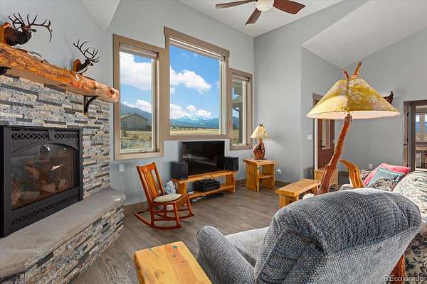 Set on 3.33 acres backing directly to Colorado State Land, this custom-built retreat offers uninterrupted views, privacy, and a true connection to Colorado’s natural beauty. Inviting curb appeal features Ponderosa, Bristlecone, and Douglas pine trees, a drip irrigation system, a drystack stone entry, "Smart" siding, and a welcoming concrete patio. Inside, the open floor plan is filled with natural light and framed by breathtaking views of the surrounding fourteeners. Rich knotty alder cabinets, trim, and doors pair beautifully with engineered oak flooring, creating warmth and timeless character throughout. The kitchen is designed for the discerning chef, featuring a leathered granite countertop with a chiseled edge, double oven, vent hood, dishwasher, refrigerator, and a spacious pantry—flowing seamlessly into the formal dining room with sliding doors to a back deck overlooking Aspen Ridge and the valley between. The living room is warm and inviting, anchored by a fireplace for cozy evenings. The main-level primary suite captures stunning Mt. Princeton views and offers a spacious full bath consisting of a tiled corner shower, soaking tub, private water closet, and walk-in closet with integrated laundry. A mudroom with a dog washing station connects to the attached two-car garage in addition to the powder bath, which completes the main level. Upstairs includes an additional bedroom, a beautifully tiled ¾ bath, and two flexible bonus rooms for office, studio, or fitness. The fenced yard with gardening beds, storage shed, hot water on demand, forced air heat, and an augmented well for irrigation adds comfort and convenience. At 2,237 square feet of smart living space, this is the ideal Colorado basecamp for outdoor adventures, hot spring soaking, trail and mountain bike riding, in addition to all the winter activities.