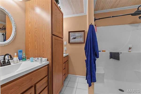 - Bar, Ceiling Fan(s), Chandelier, Country Kitchen, Eat-In Kitchen, Entrance Foyer, High Ceilings, Natural Woodwork, Pantry, Shower