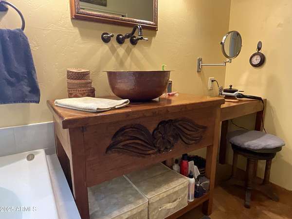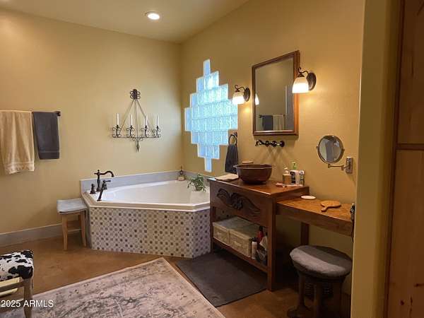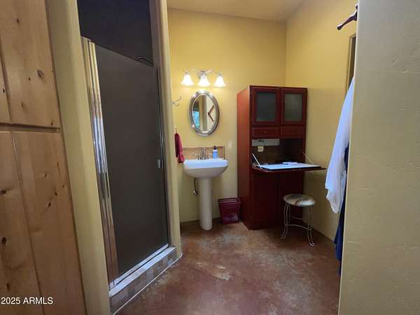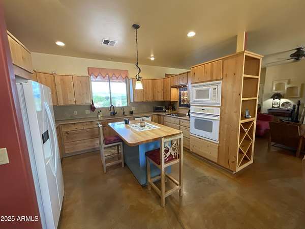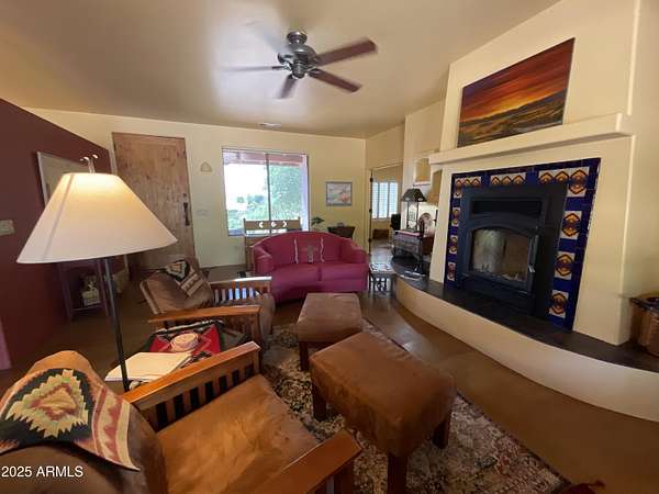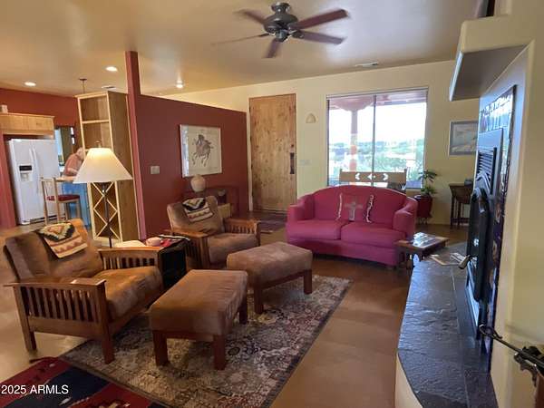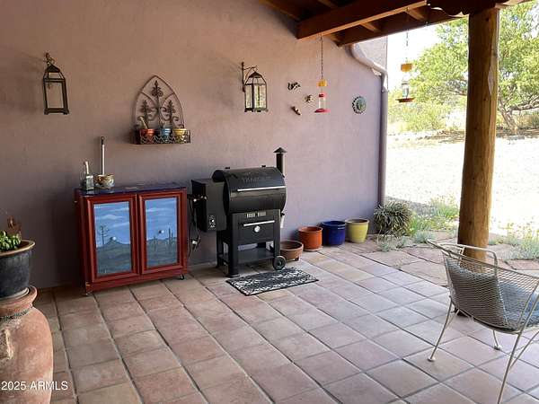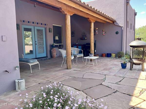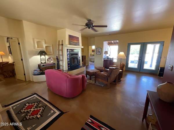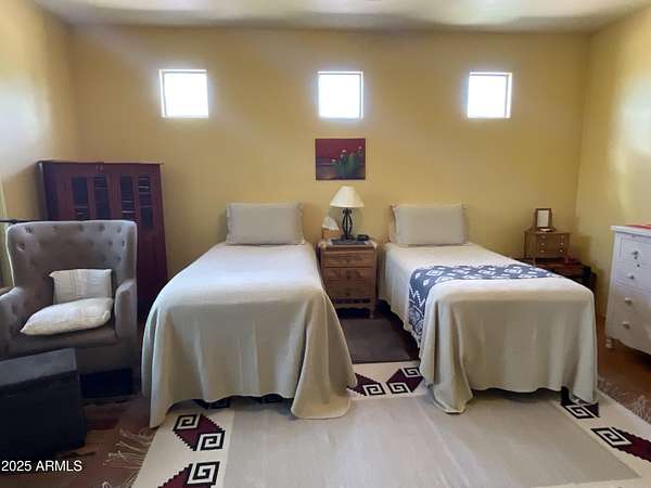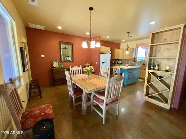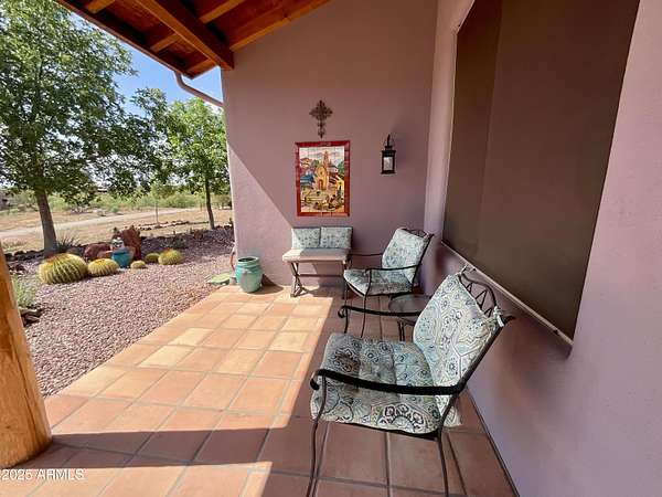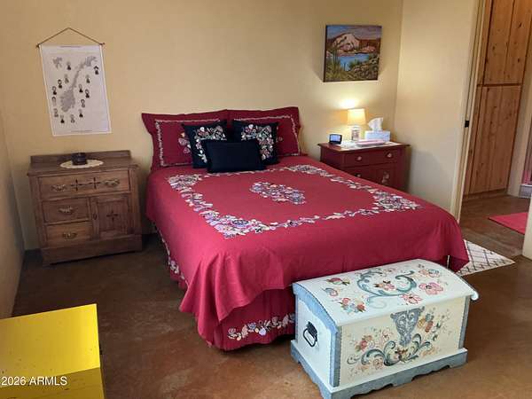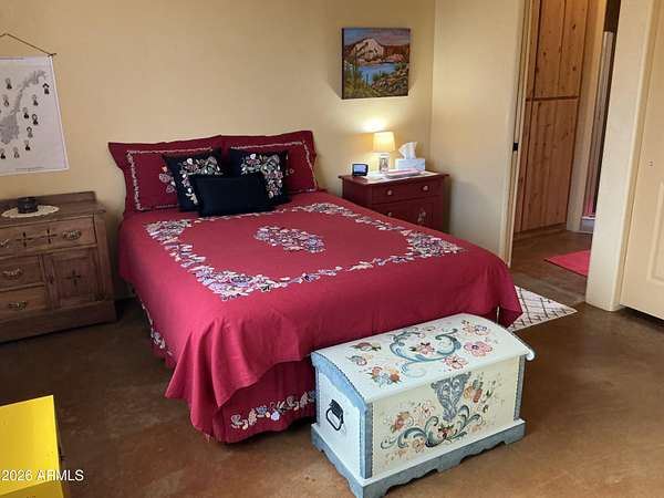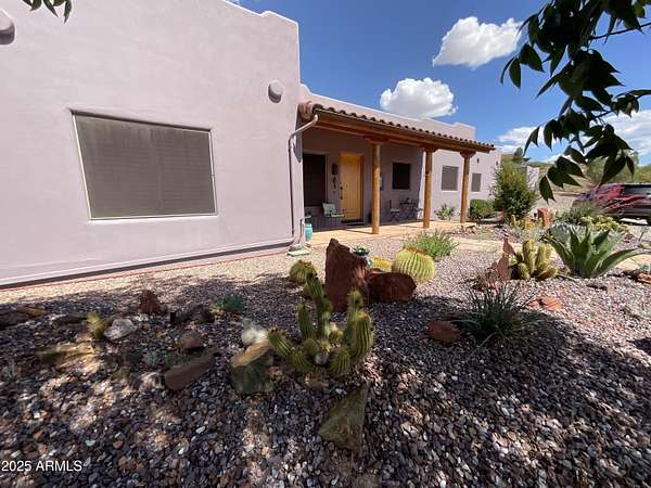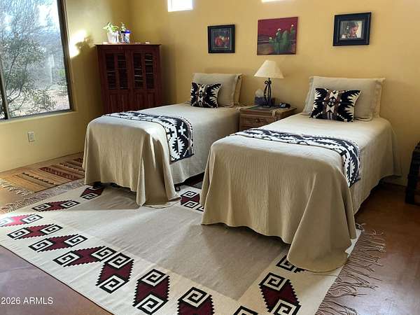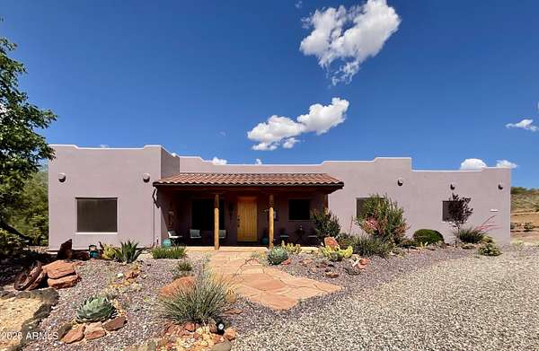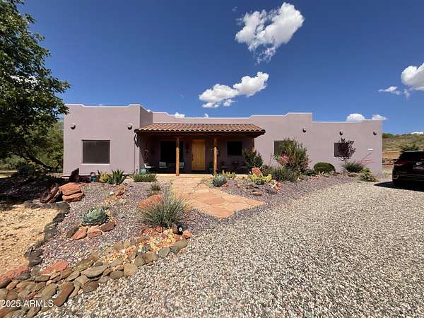 Experience the warmth and charm of the Southwest in this beautifully designed Custom Les Mickles Home. Featuring stained concrete floors and an open floor plan, this home offers spacious living with large rooms and abundant storage throughout. Thoughtfully crafted inside and out, it boasts custom cabinetry, unique murals, and artistic details that make it truly one-of-a-kind. Enjoy the serenity of peaceful sunrises and private sunsets, all from a property that includes a separate workshop/studio-perfect for creative or functional use. A 600 sq. ft. garage provides additional flexibility and space. this home offers timeless design, quality craftsmanship, and the tranquil setting you've been searching for. Pictures do not show all the attention to detail this is a must see.