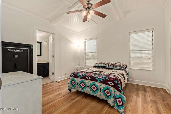 Discover peaceful desert living with breathtaking mountain views on over two acres for endless possibilities. This beautifully updated home offers a spacious open layout with split bedrooms, high ceilings & new high-end laminate wood flooring throughout. The kitchen shines with a new stove & new dishwasher. Major 2023 updates include a new roof for home, garage, & shed, two new HVAC units, fresh exterior paint and a new water heater. Additional features include a whole-home water softener and conditioning system, new water tank, new security system, new solar gate opener, and new gutters. An attached guest room with private exterior entry is perfect for a home office, gym, or guest suite. The detached garage features overhead storage, and the workshop is ideal for hobbies or projects. Right out the back, the cozy covered patio provides a space to unwind & relax. The convenient shed is perfect for storage or a workshop. Furthermore, the expansive backyard offers endless possibilities to get creative with room for a pool, RVs, a corral, and all your toys! What's not to like? Escape the bustle of the city and enjoy life in the countryside even though shopping is less than 5 minutes drive! Ask for info about hauled water! Owner is including a truck with water tank for hauling water. Cost to haul yourself is $20-40/month or around $200 for automatic delivery. See walk through video to check out this amazing space!