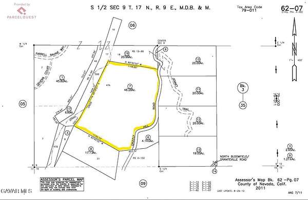State Hwy 20/ N Bloomfield Rd-north/ Grizzly Hill Rd-north about 1800 feet to the southeastt corner at GPS Lat 39.34529 Lon -120.97547