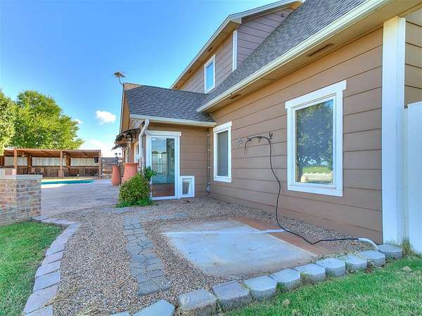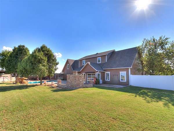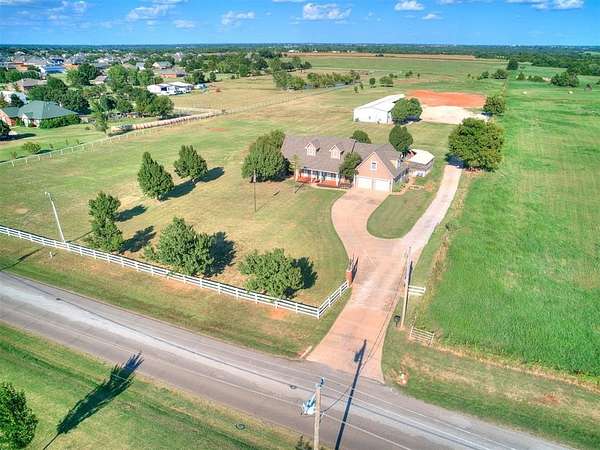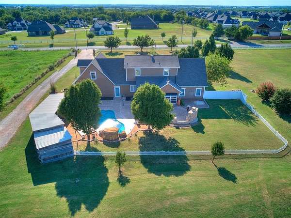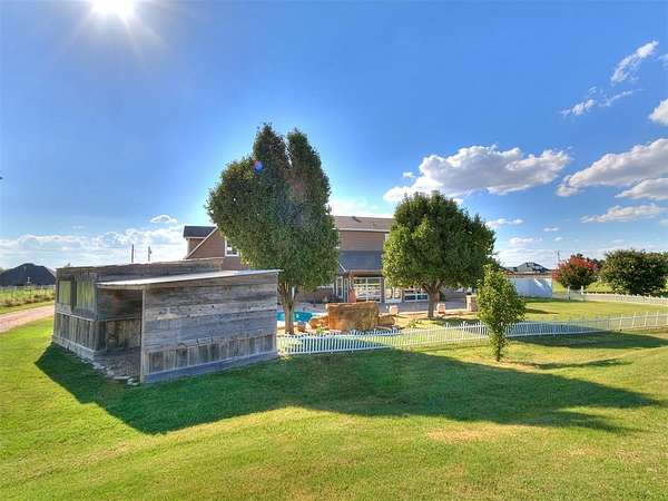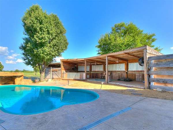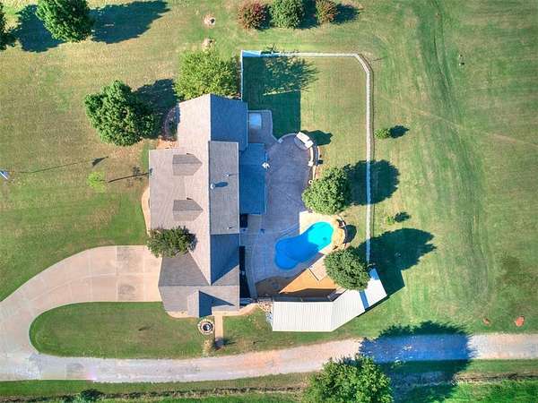 Welcome to this one-of-a-kind property! Motorized gated entry with smart features grants you access to home with generous living space on almost 10 acres, in-ground pool, large shop and guest quarters. The space in the guest quarters (approximately 840 sq ft) is in addition to the ample square footage of the main house. Designed to withstand an F4/F5 tornado, the home was built using poly-steel construction, 2X10 rafters, storm-resistant windows and concrete siding. The main house has three bedrooms and 2.5 baths, with a huge bonus room that can be used however your imagination sees fit. In addition, a secret, soundproof room offers the perfect space for an office or hobbies. Imagine the possibilities for personalization and creating spaces that reflect varied needs and preferences. Upgrades abound, including a four zone geothermal system with Nest thermostat, fiberglass pool with huge cabana, hot tub pad and outdoor fireplace. An enclosed patio with additional patio space seamlessly blends indoor and outdoor living and leisure. The property is fully fenced and both home and shop/guest quarters have irrigation. There is an aerobic septic system for the main house and lateral lines for the guest quarters and shop area. Inside the 40X60 shop, you'll find a modern guest quarters with two bedrooms, full kitchen and bathroom. Two 12000 BTU mini-splits were recently added in the guest quarters, along with many other updates. A short trip down Penn for anything you need means this home offers everything you need at your fingertips. A 96X14 additional covered parking area offers all the space you need for your toys and equipment. Located in the Deer Creek school district, this residence offers you the opportunity to experience the country lifestyle with city conveniences. Make it your own and enjoy peace of mind, relaxation and space for whatever your heart desires.