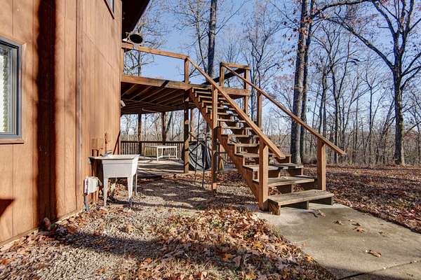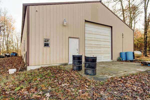 PRICED BELOW APPRAISAL!!Don't miss this unique 11 acre property with many mature oak and hickory trees situated on a private flat hilltop. This property is conveniently located within fifteen minutes of Marshfield and thirty minutes from Springfield, featuring a 2700 square foot home with two large living areas and a covered porch with large deck above to view the wildlife in this park-like setting. Enjoy the large brick fireplace in the main living area capable of heating the entire home on cold winter days. Steps away from the back porch is a 23'x24' detached garage with plenty of storage space. The property is complemented by a 40'x80' free span steel truss high bay building that is fully insulated and has a built in office and bathroom. The building is currently generating income under a commercial month to month lease. Included on the property is a nearly finished one bedroom/one bath dwelling unit (ADU) with kitchen and partial unfinished basement and garage space that can serve many purposes. There are many options to utilize this property with room for three additional building sites and even space for another 40'x80' building! Property, home and ADU is being sold as is. Let your imagination run and explore the potential options of this wonderful 11 acre property!