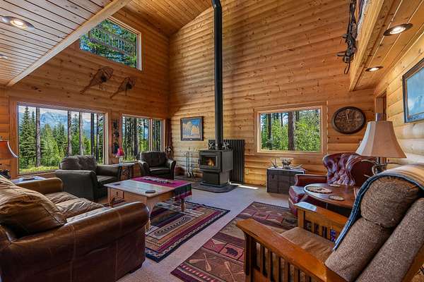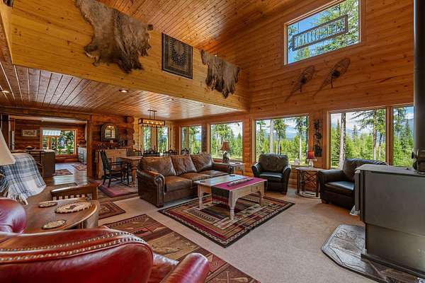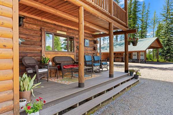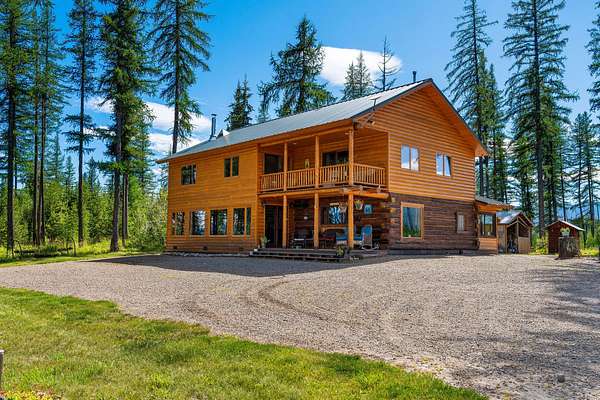 Pure Wilderness & Big Views on 20 Acres. Bordering Forest Service, this private 3-bed, 3-bath, 2,486 SF log-sided home offers a true off-grid lifestyle. Surrounded by towering larch trees and overlooking a seasonal pond, the property showcases Glacier National Park views that feel close enough to touch. The home features warm wood finishes throughout, vaulted ceilings, a bonus room, family room, and a spacious living area. A portion of the original log cabin adds rustic charm. Enjoy granite counters, LVP flooring, a main-level primary suite, high end appliances, covered deck, balcony, enclosed porch, and outdoor sitting areas. A large garage/shop, woodshed, and additional shop provide ample storage. Solar panels, generators, an inverter, and lithium-ion batteries ensure reliable off-grid power. Located just minutes from Tepee Lake and west of Glacier National Park, with abundant wildlife & outdoor recreation at your doorstep. You will love this property! Sold Mostly Furnished.