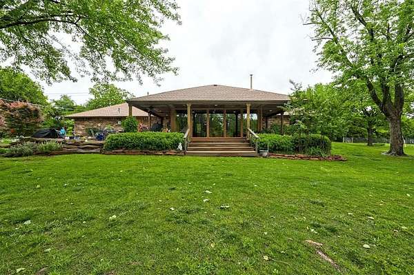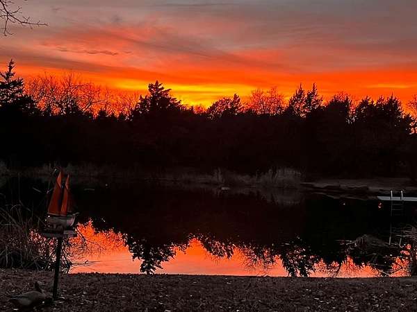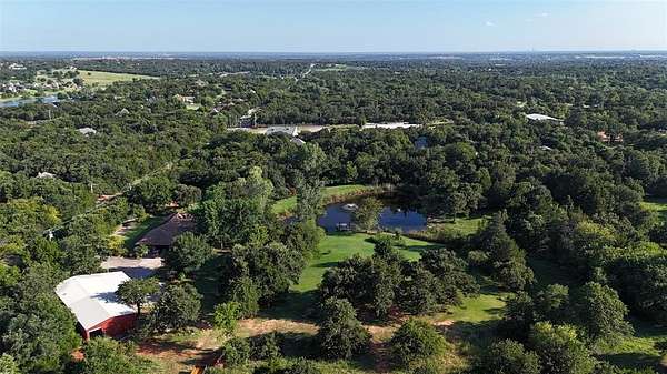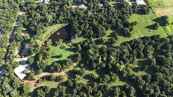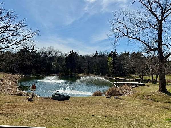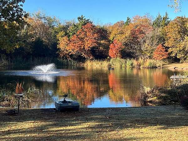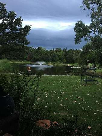 Escape to your own private oasis with this breathtaking 15-acre property, perfectly nestled in nature yet conveniently located within the highly sought-after Edmond School District. This picturesque acreage features a fully stocked pond with bass, crappie, and perch, enhanced by a tranquil fountain feature and supported by two creek beds that have been professionally lined with gypsum to help maintain exceptional water clarity year-round. Approximately 3 acres are serviced by an irrigation system, creating a lush, park-like setting that complements the property's mature trees and abundant wildlife. The landscape is further enriched by a large assortment of natural sandstone boulders, offering endless opportunities for a creative buyer to design stunning custom outdoor features. The 3-bedroom, 2.5-bathroom ranch-style home is designed for comfort and relaxation, highlighted by an incredible glass-wall sitting room that showcases panoramic views of the pond and surrounding scenery. Whether enjoying a quiet sunrise or unwinding in the evening, this space seamlessly brings the outdoors in. An oversized office provides the perfect setup for a home-based business or can easily be converted into a bonus room to fit your needs. Additional property features include two private water wells servicing the home and land, as well as a 30x80 insulated shop building with a concrete floor, ideal for equipment, hobbies, or workspace. Located in Logan County just outside the Edmond city limits, the property offers added flexibility and potential for future development opportunities. This one-of-a-kind property combines natural beauty, thoughtful improvements, and functional amenities, making it a rare opportunity to own your own slice of Oklahoma paradise. Schedule your private tour today!