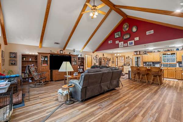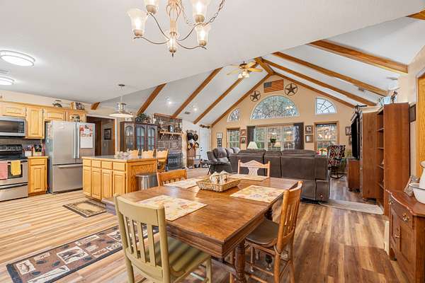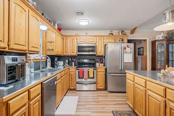 This 38 acre ranch is ideal for anyone that enjoys the equestrian or ranching lifestyle whether it be team roping, breakaway roping, trail riding, barrel racing or other equestrian sports or just want to raise a few head of cattle and enjoy country living. This property is located about 8 miles southeast of Heavener in beautiful Southeast Oklahoma. The property is accessed off of Lovings Road, a paved county road. You will enter the property on a gravel drive that winds through the pastures, past a nice pond and up a rise to an open area where your forever home sits.The property is flat to gently sloping with open pastures for grazing and areas of large trees that provide shade for livestock and habitat for wildlife frequently seen by the current owners. The entire property is fenced and crossed fenced for rotational grazing. There is a large pond for livestock watering and that is known to be home to some very nice bass and other species of fish. There is a large open area surrounded by shade trees that would be ideal for an arena, if so desired.The exterior of this ranch style home is brick and rough sawn cedar, with a metal roof. The house has 1,935 square feet of living space in a split floor plan. As you enter from the front porch you are greeted by an open concept living area with a beautiful brick wood burning fireplace, palladium windows and a cathedral ceiling with exposed beams. The living room flows seamlessly into the kitchen and dining room. The kitchen features oak cabinets, laminate countertops, stainless steel appliances that convey to the new owner. There is a large island for food prep, dining and as a gathering place for friends and family. Located off of the dining room is an office with windows on three sides which are guaranteed to make you stop and day dream instead of getting your paperwork done. The large master suite is located off of the living room and has its own ensuite bathroom with a large vanity and a beautiful tiled shower, a walk in closet plus two additional closets. Next to the master suite is the laundry room with oak cabinets, an area for a freezer and a door that leads to the back porch.At the opposite end of the home, there are 2 good sized bedrooms and a shared bath with a single vanity and tub shower combination. Flooring throughout the house is a beautiful laminate vinyl plank that was installed last summer. At the end of the drive and next to the house, there is a detached 2 car carport on a concrete slab, with a metal roof and a storage room. Behind the house is a 10' x 10' gazebo for outdoor dining or just relaxing after a day of working or playing.There is a 60'x37' metal horse barn with sliding doors on both ends and a 12' alleyway. The barn has electric service, lighting and water. Inside the barn is a bathroom with a toilet and shower, a tack room with air conditioner and a sink and plenty of storage for saddles and other tack and a large workshop with 220 volt wiring. The back half of the barn has 6 large horse stalls. Behind the barn is a large corral. On each side of the barn there is a 12'x60' shed for storage of farm equipment or shade for livestock.Next to the barn is a 2 bedroom, one bath mobile home that is structurally sound and would make a great guest cottage or hobby shop. Behind the mobile home is the garden with multiple raised beds for growing your own vegetables and flowers. There is a 12'x32' loafing shed for your horses or mules and 2 additional outbuildings for storage of gardening and lawn equipment. Electric service is provided by Kiamichi Electric Cooperative. The home, including the central HVAC unit, is total electric. Water for the property is provided by a drilled well that is located inside the well house in the back yard. All of the well equipment was replaced approximately 2 years ago. There are 2 septic systems, one for the home and one for the barn and mobile home.Taxes for the property are currently $1,958 annually and will be reassessed after the sale of the home.This amazing property is being offered for $439,000 by United Country Mixon Realty and Auction, Poteau, OK. 918-647-9114.Coordinates: 34.85593, -94.51128