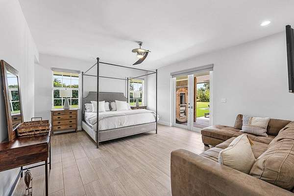 Welcome to your dream oasis in the heart of Wellington's prestigious equestrian community! This stunning, fully updated, one-of-a-kind home boasts 7 bedrooms plus a den, loft, and bonus room, offering unparalleled space and luxury. With 6 total baths, including 4 baths in the main home and 2 bedrooms and baths 2 in the guesthouse, this residence provides ample comfort and privacy for family and guests. Upon entering, you'll be greeted by tasteful decorative touches throughout, accentuating the home's modern elegance. The spacious layout seamlessly integrates indoor and outdoor living, with full impact windows inviting abundant natural light and offering picturesque views of the sprawling 2.69-acre property. Step outside to your brand new outdoor entertainment area, where luxury meets