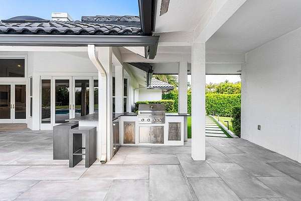 - Auto Sprinkler, Built-In Grill, Complete Impact Glass, Covered Patio, Fence, Fenced Yard, Open Patio, Outdoor Shower, Private Pool, Summer Kitchen, Well Sprinkler