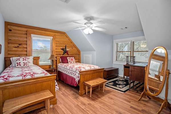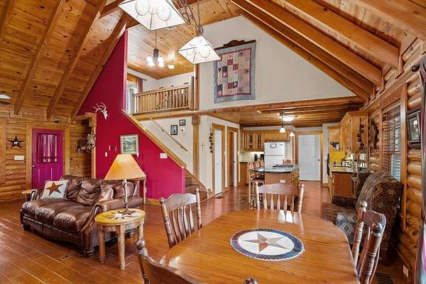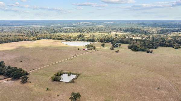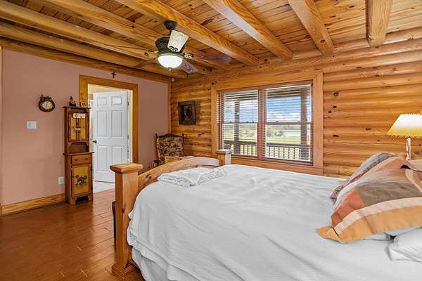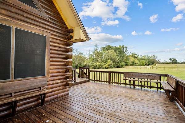 Discover this beautiful 147.2820-acre ranch conveniently located between Houston and Dallas. As you enter the ranch from State Highway 19 South, you will enjoy the long driveway offering sweeping views of open pastures with some areas of woods, a stocked 6-acre lake, and a welcoming three bedroom, two bath log home sitting on the hill. The home features an open concept living, dining, and kitchen area, with a primary suite on the main level, and a bonus retreat upstairs offering two bedrooms, bath, and a sitting area with balcony access overlooking the property and lake. This ranch is ideal for agriculture, recreation, or a relaxing retreat, with fenced and cross-fenced grazing pastures and water sources in each pasture. The area is known for large white-tailed deer! You will also find a bunk house with a kitchen and bath, a barn, and a storage building. Outdoor living is enhanced by the main home's expansive porches and decks, perfect for morning coffee and tranquil views.