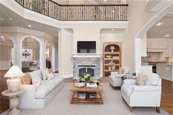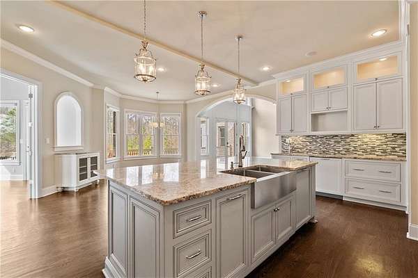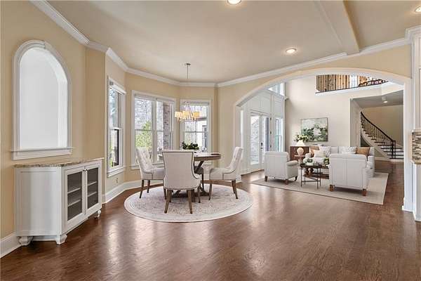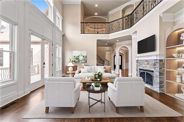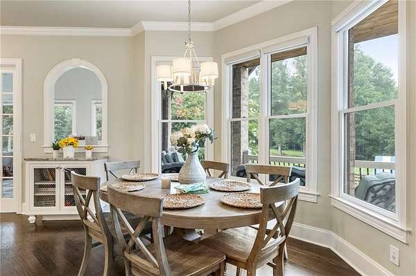 Reminiscent of old world charm, this private sanctuary is tucked on Milton's coveted Wood Rd. From the moment you arrive, this brick + stone home sets the stage for an extraordinary living experience! With over 9700 sqft of living space, 6 bedrooms, incredible gathering spaces and a large chef's kitchen, this home is ideal for entertaining yet comfortable for every day living. The owner's suite on the main features a newly designed spa experience bath along with a sun lit office or sitting room. The secondary bedrooms are each one of a kind - vaulted ceilings and charming niches. Bonus: There is a second owners suite upstairs. On the terrace level you will discover more entertaining spaces, a lounge area, gym and an ideal guest suite with direct access to the private yard. Dreaming of a hobby farm? Pool oasis? Sport court? Create it here on 3.4 acres. Discover Milton - Award winning schools, Crabapple Market, Scottsdale Farm, Painted View Winery and boutique shopping in Crabapple Market and just minutes to Downtown Alpharetta and Avalon.