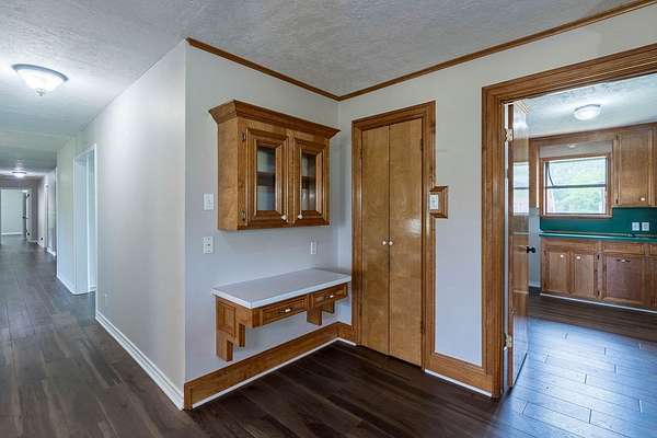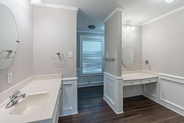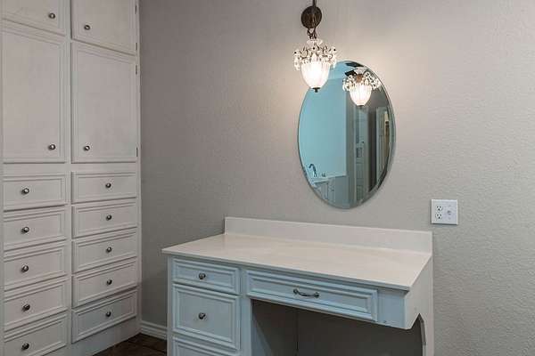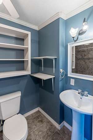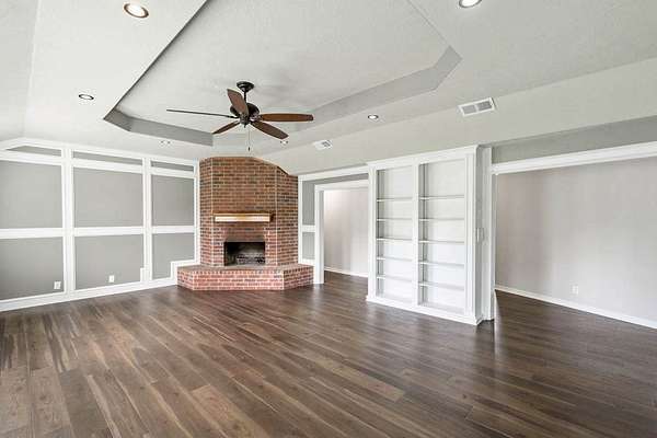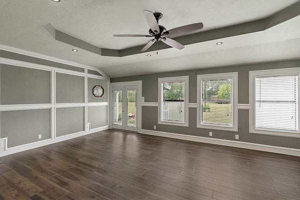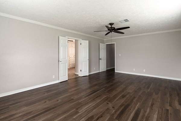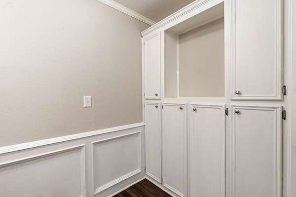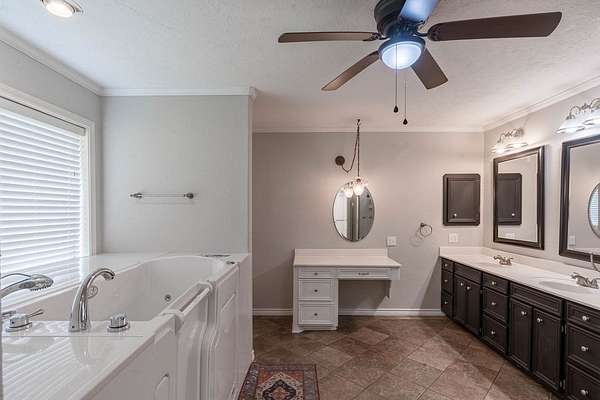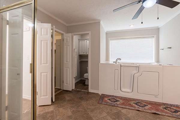 - Blinds, Built-In Features, Ceiling Fan(s), Crown Molding, High Ceiling(s), Walk-In Closet(s)