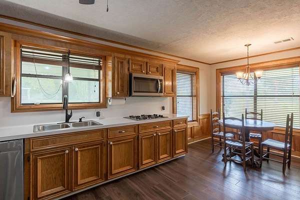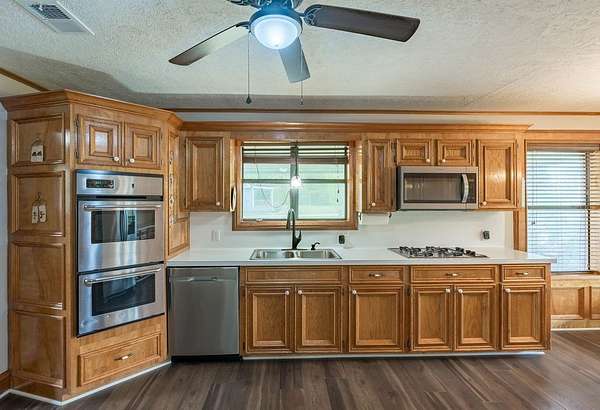 Welcome to your private East Texas retreat, where 9 picturesque acres, a tranquil pond, and wide-open skies set the stage for peaceful country living. Step inside to find 2,704 square feet of inviting comfort, blending warmth, functionality, & timeless appeal. The formal dining room adds an elegant touch for hosting holidays while the light-filled living room anchored by a cozy wood burning fireplace creates the perfect space to gather or unwind. The kitchen is a dream for both everyday living & entertaining, featuring abundant storage, a double oven, & a charming breakfast nook. The spacious bedrooms offer comfort for all, while the expansive primary suite serves as a true retreat with a walk-in tub, separate shower, & ample space to relax. Outdoors, you'll fall in love with the huge, covered porch, ideal for sipping coffee, watching wildlife, or enjoying peaceful evenings. The property also features a 3-car garage, a versatile efficiency apartment or flex space perfect for guests or hobbies, & a Generac generator for peace of mind. Whether you're looking for a serene homestead, room to roam, or a place to create lasting memories, this exceptional property delivers it all.