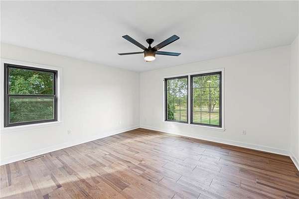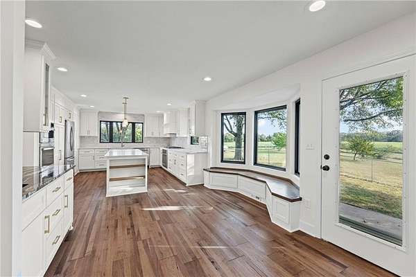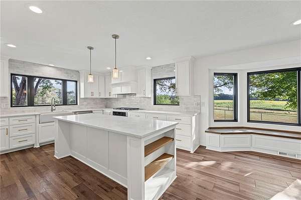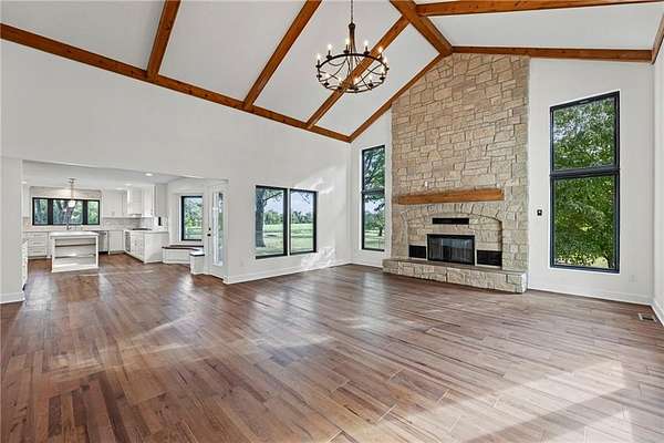 Beautiful country estate on 10 acres with a mixture of mature trees and pasture just minutes away from KC Wine Company! This nearly 4,000 sq ft. residence combines modern updates with timeless country charm, offering abundant space both inside and out. Upgrades include freshly painted interior and exterior, new lighting fixtures, new garage doors, new carpet/flooring, and new Andersen windows. Completely remodeled kitchen with brand new cabinets, countertops, hidden pantry, appliances, and coffee/wet bar. Vaulted great room with stunning floor-to-ceiling wood-burning stone fireplace (fireplace is 9'x16'. )New wood floors throughout the main level, spacious dining room, perfect for gatherings, Large office/nursery/playroom/sitting room. Remodeled guest bath w/ new countertop, fixtures, faucets, etc. Luxurious remodeled master suite with a spa-like bathroom, walk-in closet, and convenient laundry room access Move-in-ready with nothing to do but enjoy! The full unfinished basement adds even more potential, featuring a large family room area with second wood-burning brick fireplace, a massive safe room, plumbed for a full bathroom and ample storage with endless possibilities! The upstairs area has two oversized bedrooms filled with natural light, den/office/playroom connecting to a generous storage room and 2 fully remodeled bathrooms. Listing goes live Aug 29! Listing agent is related to Seller.