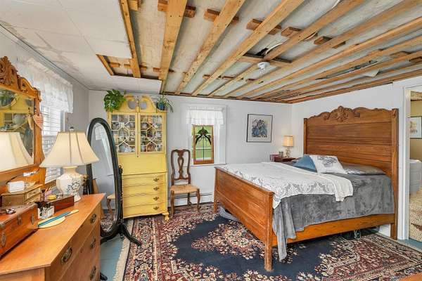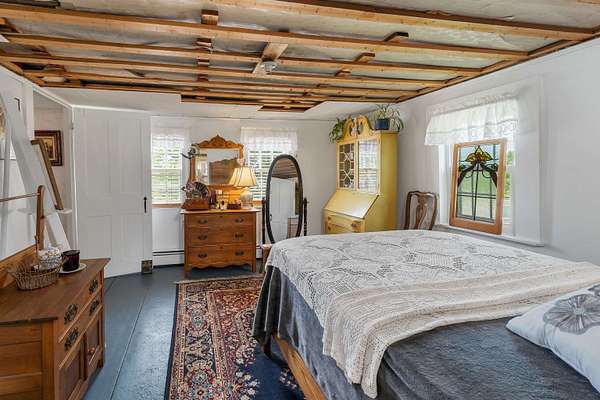 PRICE REDUCED! Bring your vision and finishing touches to this partially renovated 1720 Cape with a stunning attached post-and-beam barn, set on 2 level acres along scenic Upper City Road. Surrounded by rolling farmland, this rare find offers a blend of history, character, and potential. Much of the heavy lifting has been done--now it's your turn to complete the story. Inside, you'll find exposed beam ceilings in some rooms, several new windows, and a cozy woodstove insert to warm you on cool nights. The main floor features a full bath and a primary bedroom with a half bath, already plumbed for a vintage clawfoot tub currently stored in the barn. A butler's pantry with a sink overlooks the backyard, and the kitchen retains built-in cupboards, though a sink has yet to be installed. Upstairs offers two bedrooms with closets, a small study, and access to an unfinished attic--ready for your ideas. The attached post-and-beam barn is a standout feature, perfect for animals, equipment, vehicles, storage, or a workshop. A large chicken coop barn remains on the property but is unsafe and strictly off-limits-no access will be granted near or inside structure. Whether you're looking to create a homestead, horse property, or restore a piece of New England history, this home offers the opportunity. Located just minutes from Route 28 and Route 129 for commuting, and a local restaurant, apple orchard, and hardware store nearby. Cash or Rehab Loan most likely will be needed.