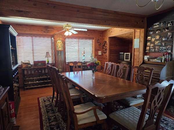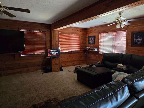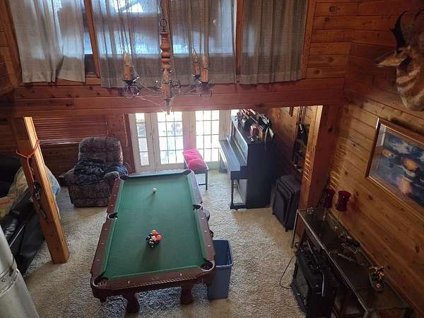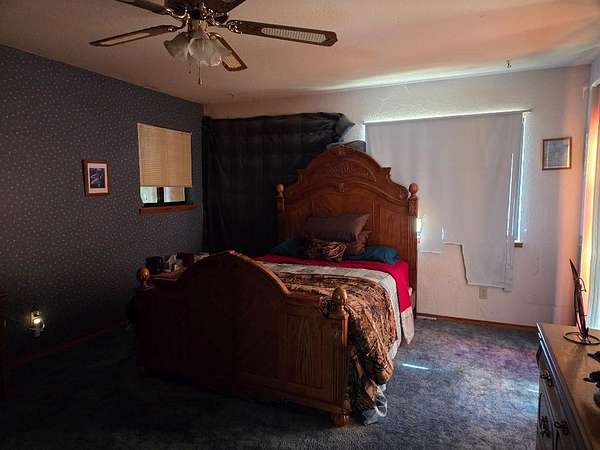 Est $3,289/moLarge 4 bedroom home located on almost 14 acres. Large living room with woodstove. Open kitchen area with breakfast barn and even a fireplace. Spacious dining area. Downstairs is bedroom currently used as storage area, laundry room with pantry set up and full bath. Upstairs is master bedroom, two additional bedrooms plus bonus room that access large balcony area. Detached 3 car garage that is full of stuff plus carport area. Some outbuildings but not in the best of shape. There is work needed but so much potential. Newer roof on house, leased solar with back-up batteries.