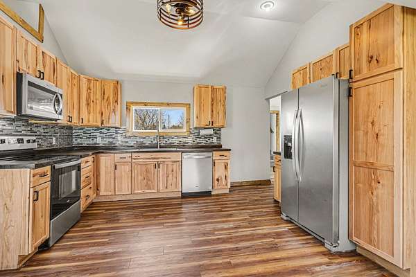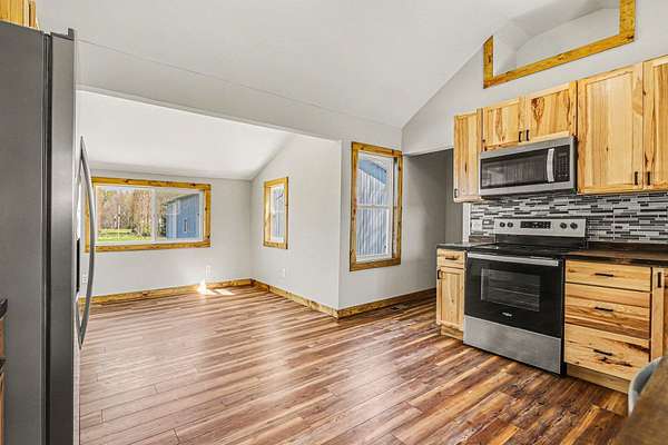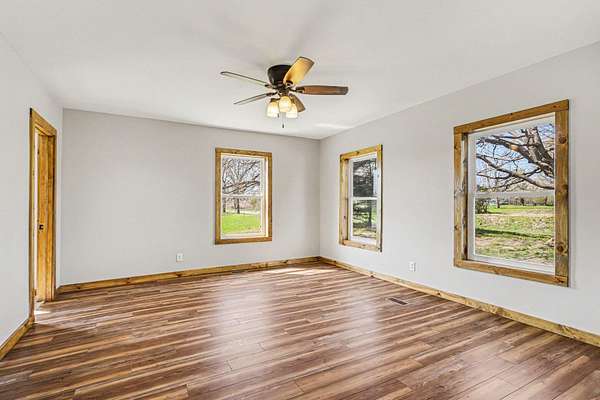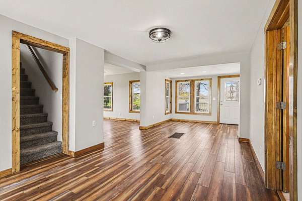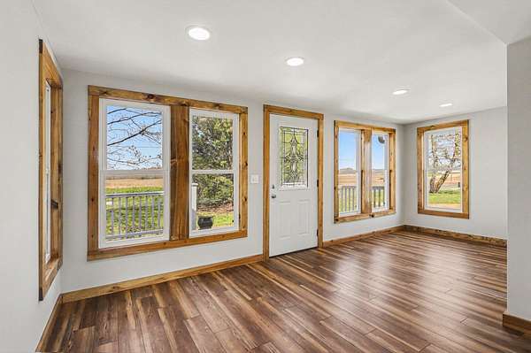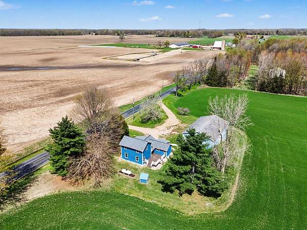 Step into the charm of country living with this beautifully updated 1900s farmhouse set on nearly two peaceful acres. Blending timeless character with modern convenience, this move-in-ready home has been thoughtfully renovated throughout. Recent upgrades include new siding with underlayment, a new roof with decking, fascia, soffits, and gutters, plus all-new windows and exterior doors. Major mechanical updates include a new septic system, well, furnace, central air, updated electrical, plumbing, and blown-in insulation. Propane tank recently filled. Inside features new flooring, an updated kitchen with hickory cabinets and all-new appliances, plus a remodeled bathroom with modern finishes. Enjoy the convenience of a main floor primary bedroom and main floor laundry. A 30 x 60 three-stall pole barn offers excellent space for storage, hobbies, or work. A new stamped concrete entry welcomes you home. Peaceful country setting with extensive updates already complete.