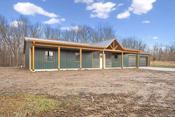 Experience the ideal combination of contemporary living and wide-open country space with this newly constructed 3-bedroom, 2-bath barndo style situated on just over 8 acres. Designed with comfort and functionality in mind, the open-concept layout offers a seamless flow between the living, kitchen, and dining areas--perfect for everyday living or hosting guests. Abundant natural light fills the interior, creating a warm and welcoming atmosphere throughout. Built for efficiency and longevity, this home features metal roofing and siding, all-electric utilities, and energy-conscious construction. Step outside to enjoy expansive covered front and rear porches that overlook your own private acreage, providing the perfect setting for peaceful mornings, quiet evenings, and enjoying the surrounding wildlife and scenic views. With modern finishes, a practical layout, and plenty of space to stretch out, this property delivers new-build quality paired with timeless barndo style home.