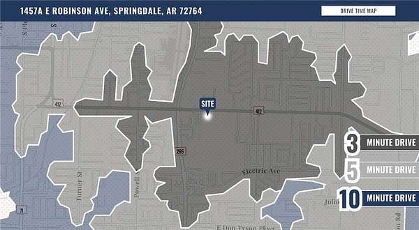 From I-49, take the Don Tyson Parkway exit (Exit 70) and head east. Continue straight until you reach Highway 71B (Thompson St.). Turn left (north) on 71B. Go a short distance, then turn right (east) on Robinson Avenue / Hwy 412. Continue on Robinson Avenue until you reach 1457 E Robinson Ave, which will be on your right side.