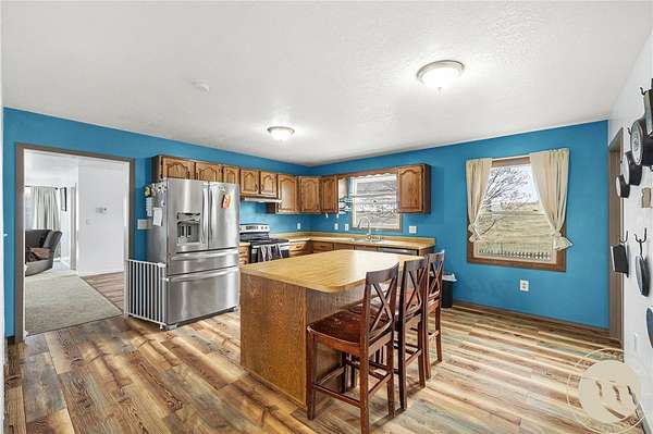 Enjoy the freedom of Montana living on 4.79 acres with no restrictions and space to make it your own. This 5-bedroom, 3-bath home offers 2,968 square feet, a 2-car tuck-under garage, 728 sq ft shop, cross fencing for animals, solar, and a wraparound Trex deck with views. Inside, the pellet stove creates a cozy focal point, while the kitchen features a large pantry for added storage. An unfinished second kitchen adds flexibility for future use. Located just outside the city limits near Four Dances Recreation Area in the Lockwood School District, this property combines space, versatility, and lifestyle appeal. Bring your animals, hobbies, and vision-this property offers the kind of flexibility that can be hard to find this close to Billings.