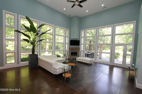 - Ceiling Fan(s), Central Vacuum, Gas Log, High Ceilings, Pantry, Solid Surface, Sound System, Walk-In Closet(s), Walk-In Shower, Whirlpool