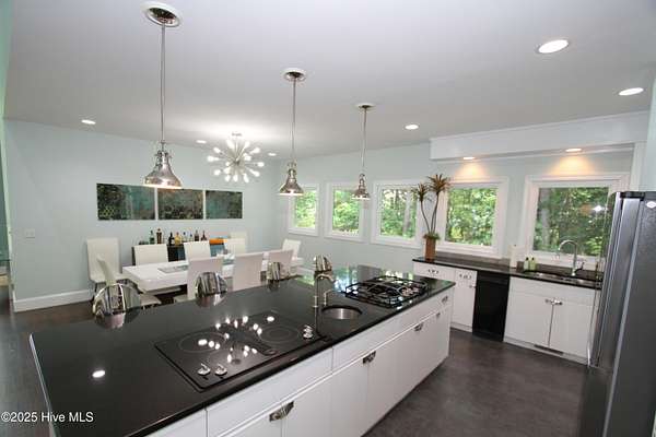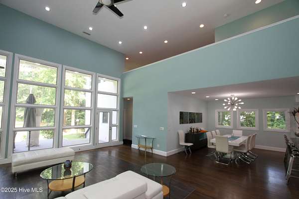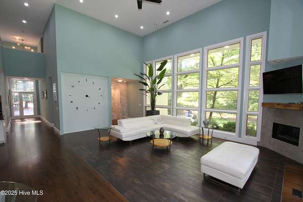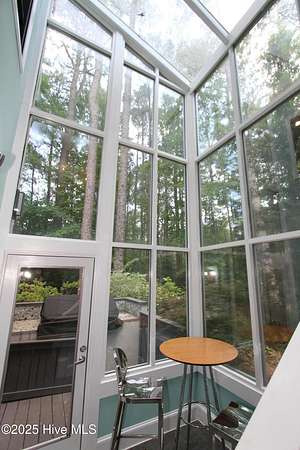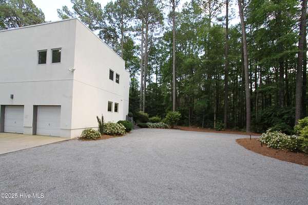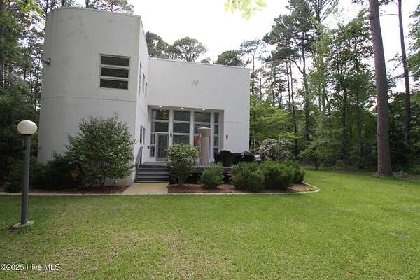 Can you say....COOL? This is the first thing most people think of when they see this home...its sooooo cool! Maybe its the contemporary style, the uniqueness, or the clean bright white and cool ''surfs up'' colorscape of the interior. Maybe its the clear view of Caribbean blue skies on those cloudless days that make the in feel like the out. Maybe its the super open floor plan and the feeling like I'm living my best life in secrecy, tucked back in a beautiful landscaped lot of 3 acres just three stop signs from the hospital complex! I'm not sure...maybe its the entire package, all I know is when I walk in the door and down the hall to the living room it feels cool, open, bright, clean, neat, interesting, fun, fresh, spacious,...and like home! Looking for something out of the ordinary, come take a peak inside 1458 Forest Acres Drive! Built in 1991 and designed by an area architect out of New Bern, NC this home is truly one of a kind. The interior space holds three secondary bedrooms(one currently used as a exercise studio - with a mirrored wall), one primary suite with fireplace and huge bathroom, secondary full bath, second story laundry room, private office, movie/video/music room, massive kitchen, open dining, and floor to ceiling glass encompassed sun drenched living room. Sneak out the side door from the cafe table corner space and you'll be cooking outside on the built in stainless natural gas grill. Hop down the three steps to the 2 single car garage setup with super high ceilings, electric car charger, and built in full length workshop counter and cabinets. Original EFIS siding system is said to have been completely stripped from the house in 1994 and replaced by Highsmith Plastering Company of New Bern NC, per the listing in 2014 as disclosed by the previous owner and agent in the MLS. Home inspector noted the floor system for the sunken living room is all still in place, its just been floored over the make the living room flat.