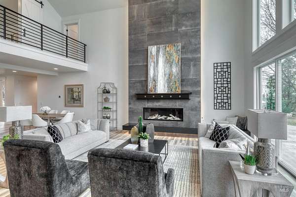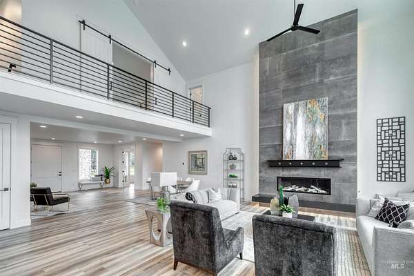 SPACE, PRIVACY, FREEDOM This completely reimagined and extensively renovated 4313 sq/ft residence rim view property sitting on 1.5 acres overlooking the Eagle Valley is pure Idaho! Enjoy the stunning entry to the 24' floor to ceiling windows and tiled fireplace. Primary suite is a true spa like retreat. High End dream kitchen with oversized pantry. Second en-suite on main level with 2 more on second floor. Car enthusiasts don't miss this 35' x 22' heated garage plus a 25' x 25' 2 car garage. Premier landscaping with north facing concrete patio, with room for pool, shop, sport court or horses. Boise River is just 1/2 mile north and the 25 mile Boise River Greenbelt is just minutes away. Here's IDAHO living without sacrificing proximity to dining, shopping and the Boise metro.