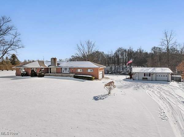MARVELOUS IN MARLINGTON! Don't miss this opportunity to own your own slice of heaven. This solid brick ranch home has been meticulously maintained and is ready for its next chapter. Home features a spacious living room complete with wood burning fireplace on the main floor. Enjoy a meal in your new eat-in kitchen or take advantage of the formal dining room with beautiful built-on cabinets. A wide hallway with its own built-ins leads to three nicely sized bedrooms and a full bath. Master bedroom features its own half bath for privacy and convenience. Lower level is partially finished with a bar and family room with its own wood burning fireplace. Very spacious laundry and utility space with lots of built-in storage. Enclosed back patio is the perfect space to enjoy the beauty of this property. You'll love having both an attached 2 car garage as well as detached garages for added flex space. Rest easy knowing that a newer Generac back-up generator has your back. Oversized detached garage closest to the house offers both garage space and extra space with a gas heating unit for storage, a game room, or a home office that's separate from your after work life. Toward the tree line behind the house is another detached garage complete with 2 bays and a workshop area. This space has propane heat available, but has not been used recently by current owner. Property also includes a newer John Deere 950 zero turn 60 inch commercial mower. SO MUCH SPACE to enjoy nature! Beech Creek runs through the property, which features a charming bridge for access to your private woods. Take a walk or a ride your side-by-side through this magical getaway close to all the amenities Alliance has to offer.