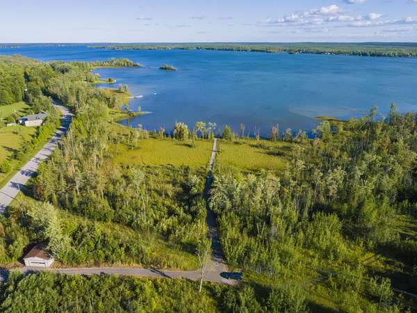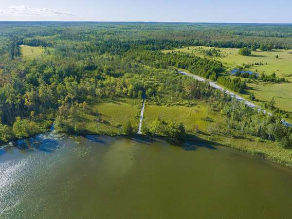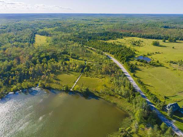 Private 17.56 acre wooded parcel with 456' of frontage on Long Lake! 2 car garage to store all your toys, gravel driveway stretches across the property, long catwalk leads you across pristine wetlands to the shore of Long Lake. Location within Krakow Township allows you to camp on the property spring, summer, and fall. Convenient location between Alpena and Posen. Paved road. Electric adjacent.